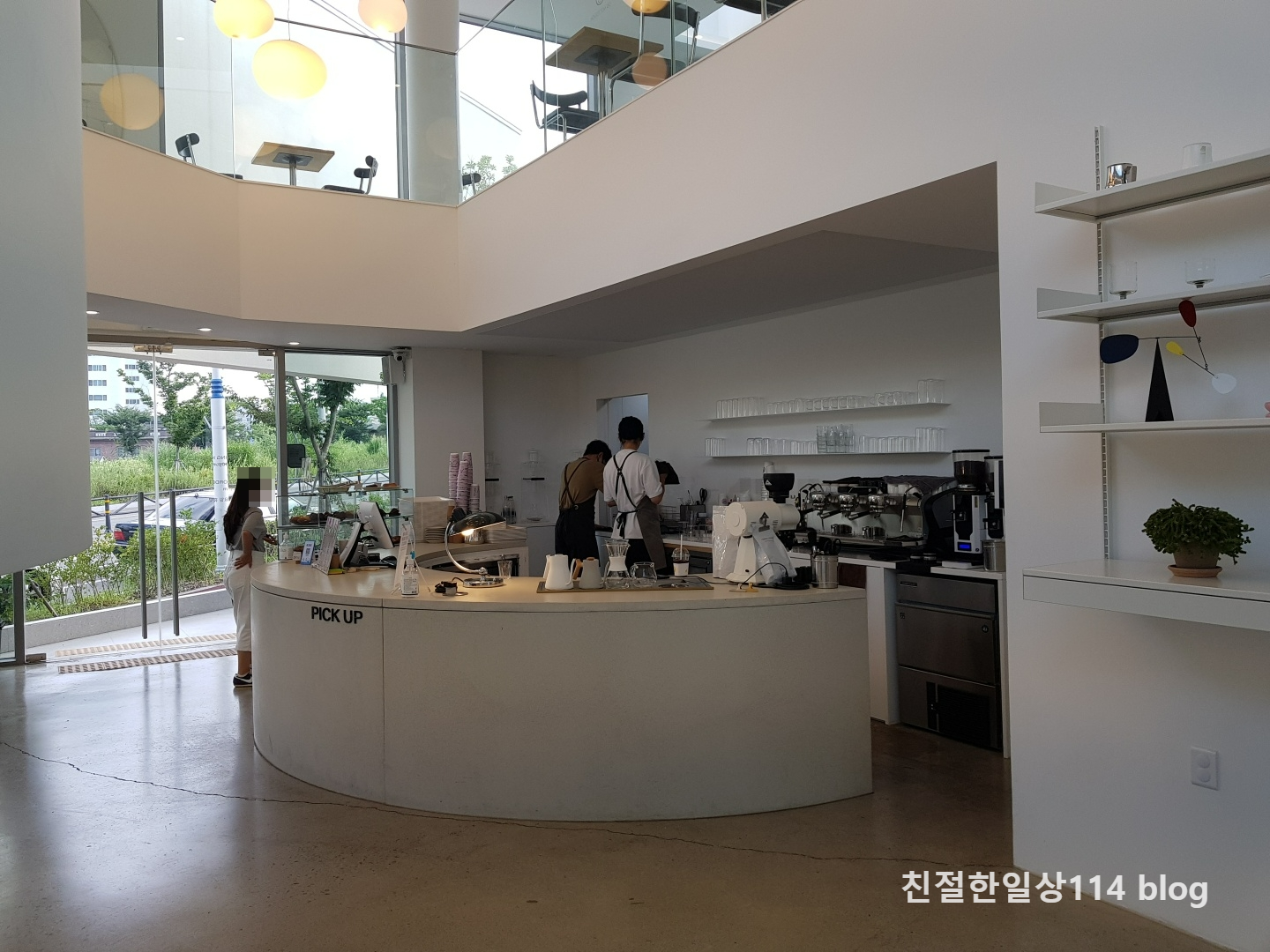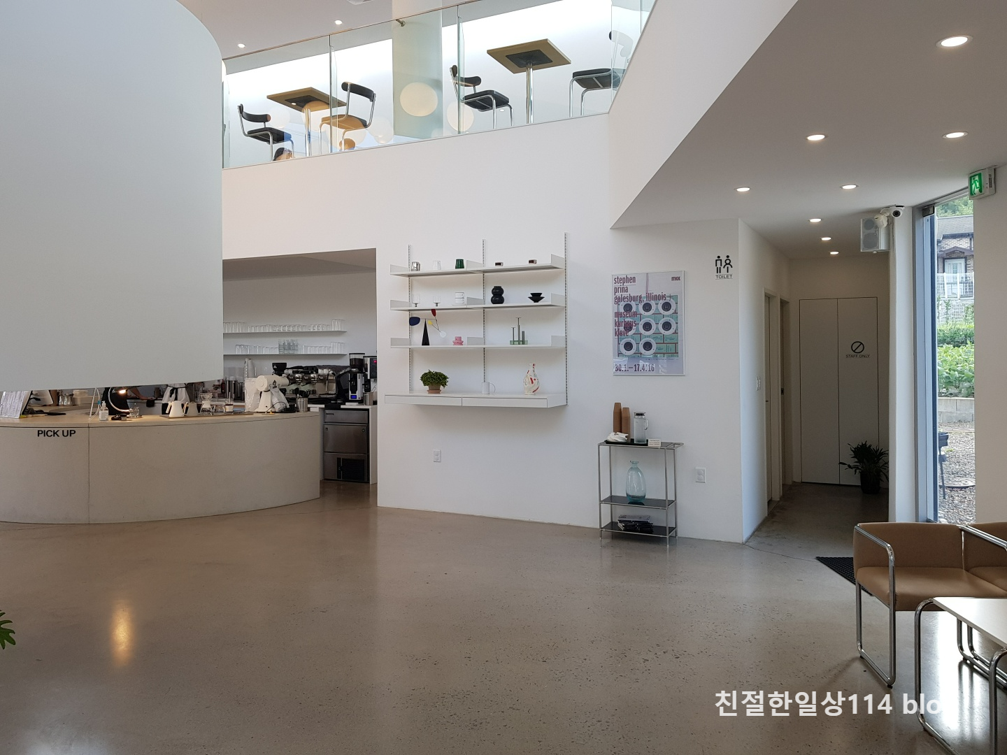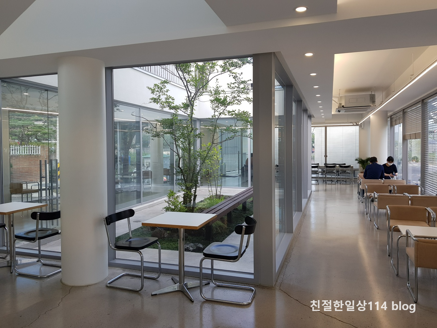 카페에 문을 열고 들어가니 여느 카페라면 카운터가 있을 법한 위치에 중정이 보인다. 카운터를 찾아 중정 옆으로 난 길을 따라 가며 카페를 둘러 본다.