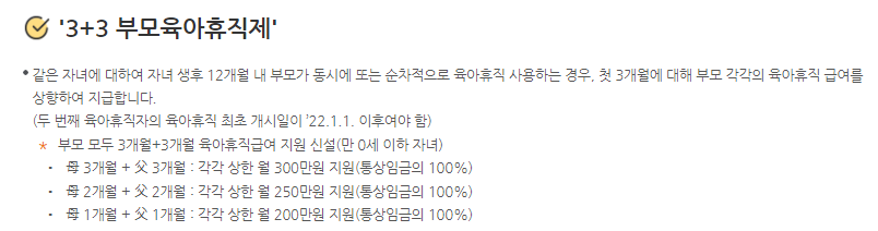 * 두번째 육아휴직자의 육아휴직 최초 개시일이 22년 1월 1일 이후여야 함