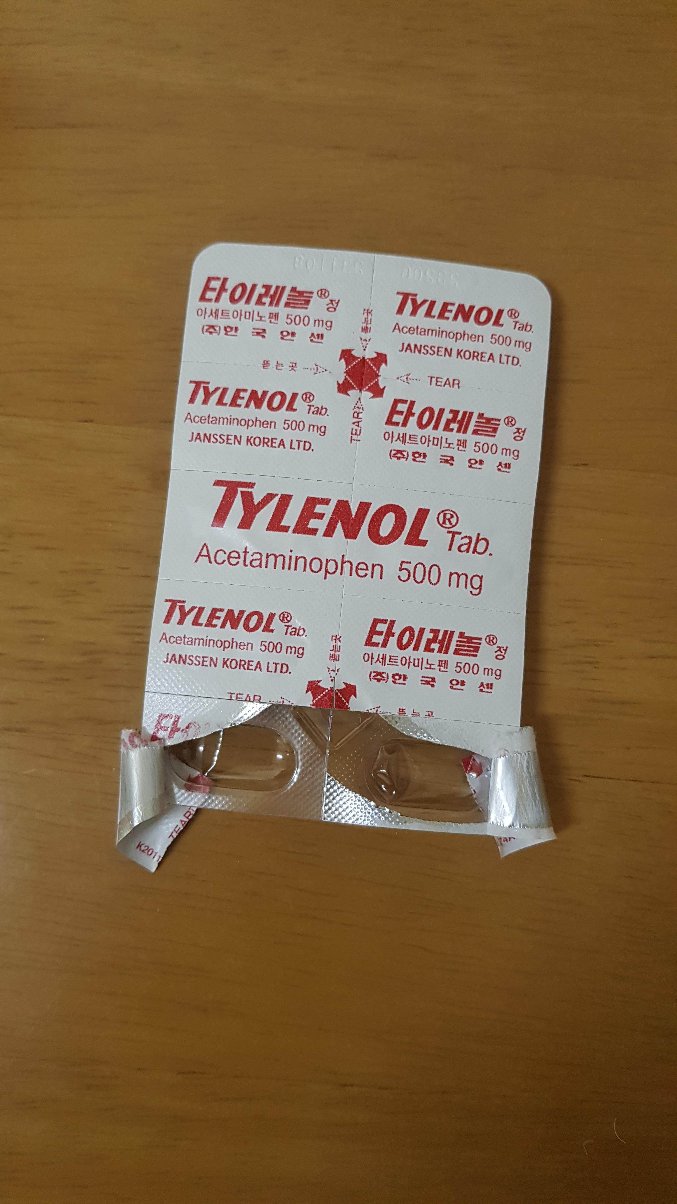 저녁 8시경 체온은 정상이었으나 두통이 있어 타이레놀 1알 복용.