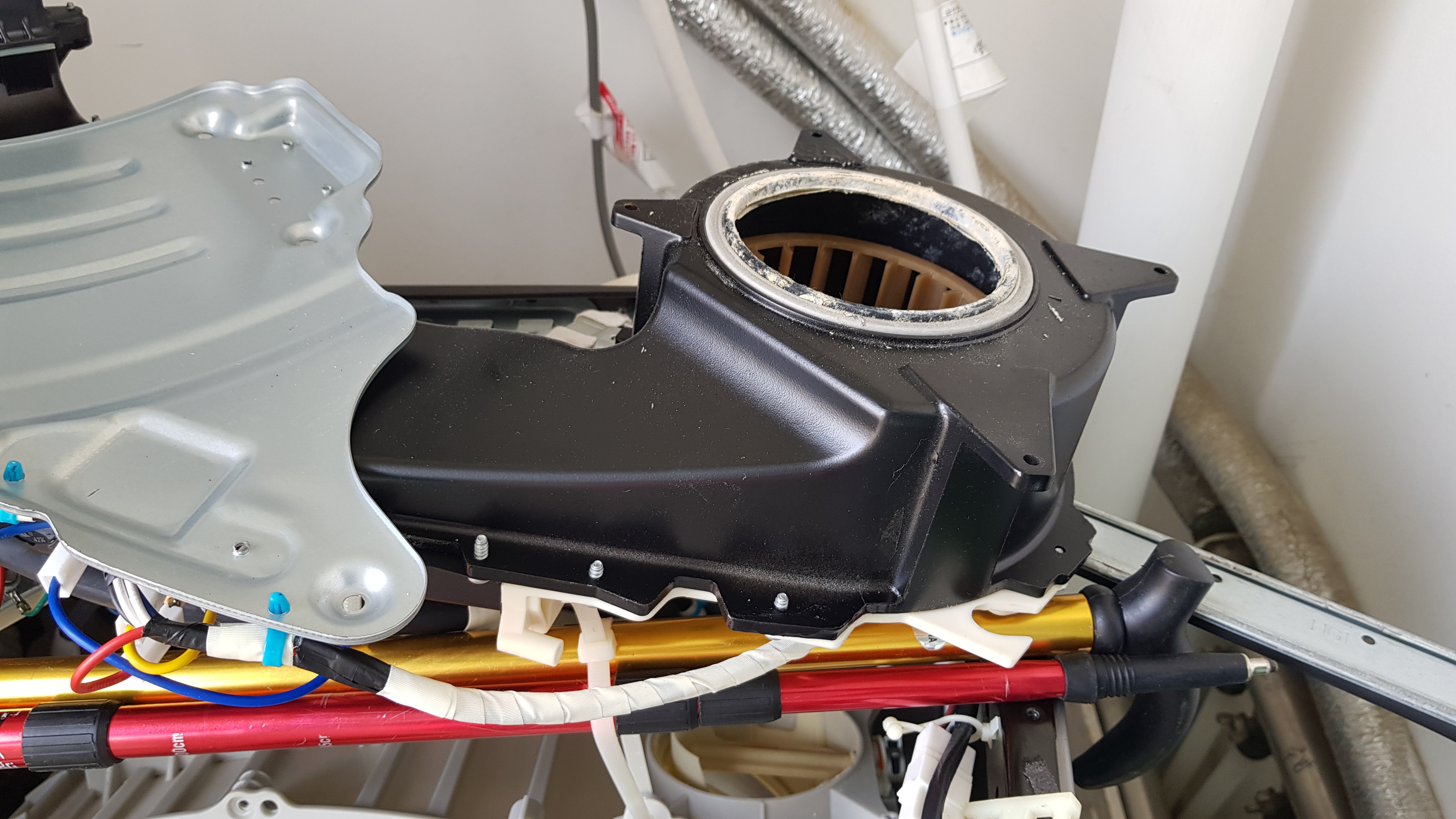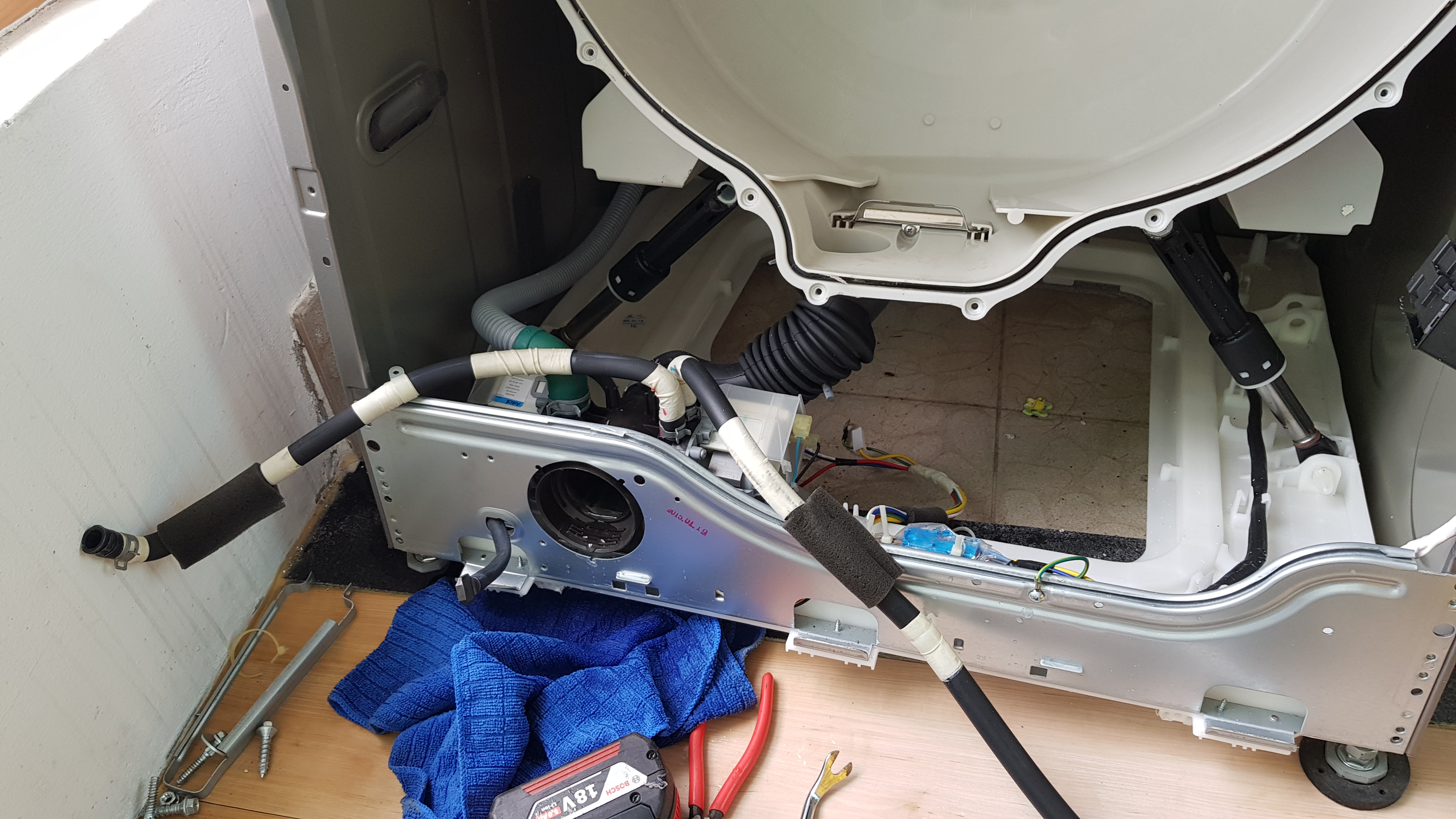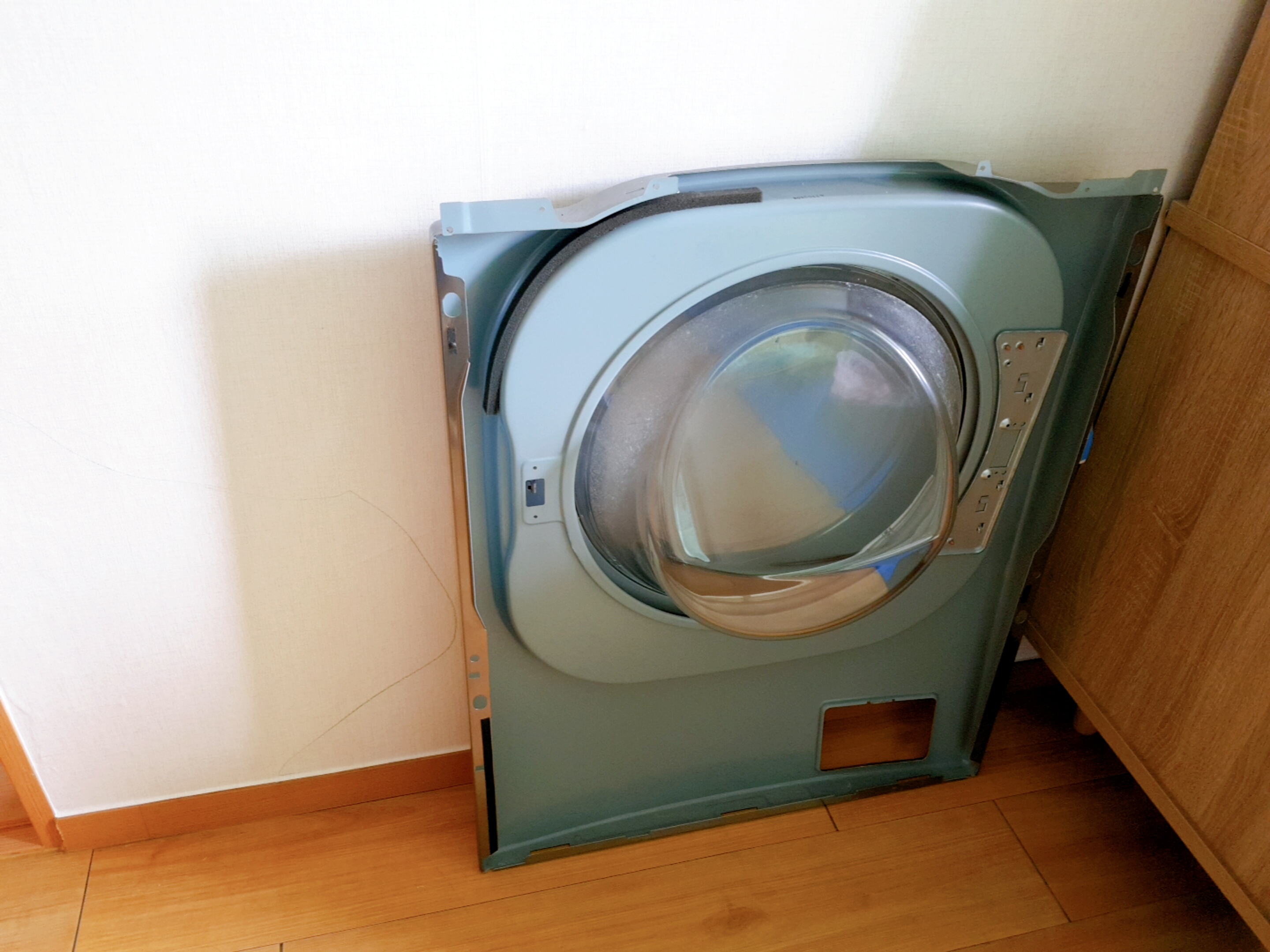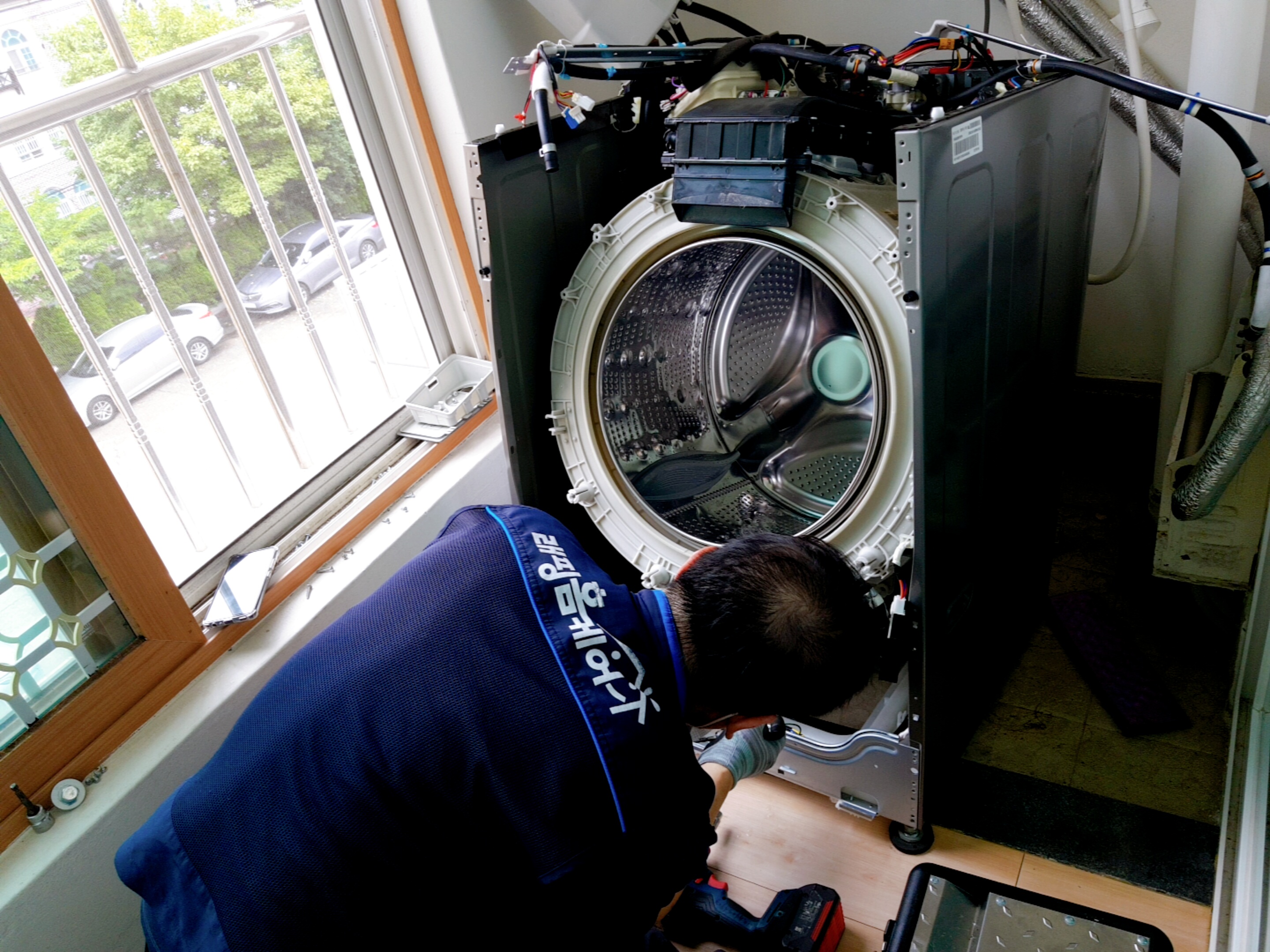 세탁기 문을 떼어내고 다음은 드럼통을 들어낼 차례인가 보다.