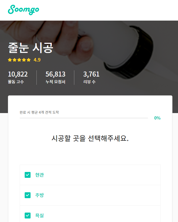 견적을 받아볼 때 내가 아는 분야가 아니거나 이미 알고 있고 신뢰하는 사람이 아니라고 한다면 견적을 최소 2군데는 받아봐야 한다고 생각한다. 그리고 공사같은 경우에는 견적을 의뢰하는 일반인과 일을 하는 전문가의 생각이 다른 경우가많고 현장마다 상황이 달라질 수 있으므로 현장에서 실행요금을 받아보는 것이 좋다. 이렇게 실행요금을 받아봤을때 가격이 너무 저렴하거나 너무 비싸다면 재확인하거나 다른 곳에 견적을 알아본다. 실행견적가가 이미 알고있는 가격대에서 나왔다면 합리적인 가격에 확실한 가격으로 보고 진행한다. 필자는 이런 생각을 가지고 견적을 받아보고 있으나 이마저도 실패하는 경우가 더러있다. 이번에는 가격면에서는 추가요금없이 합리적인 가격으로 시공을 했지만 시공 이후에 하자가 있어서 AS를 받는데 애를 먹었었다. 다음에는 줄눈 시공 과정과 어느부분에서 하자가 발생했는지 내용을 다뤄볼 예정이다.