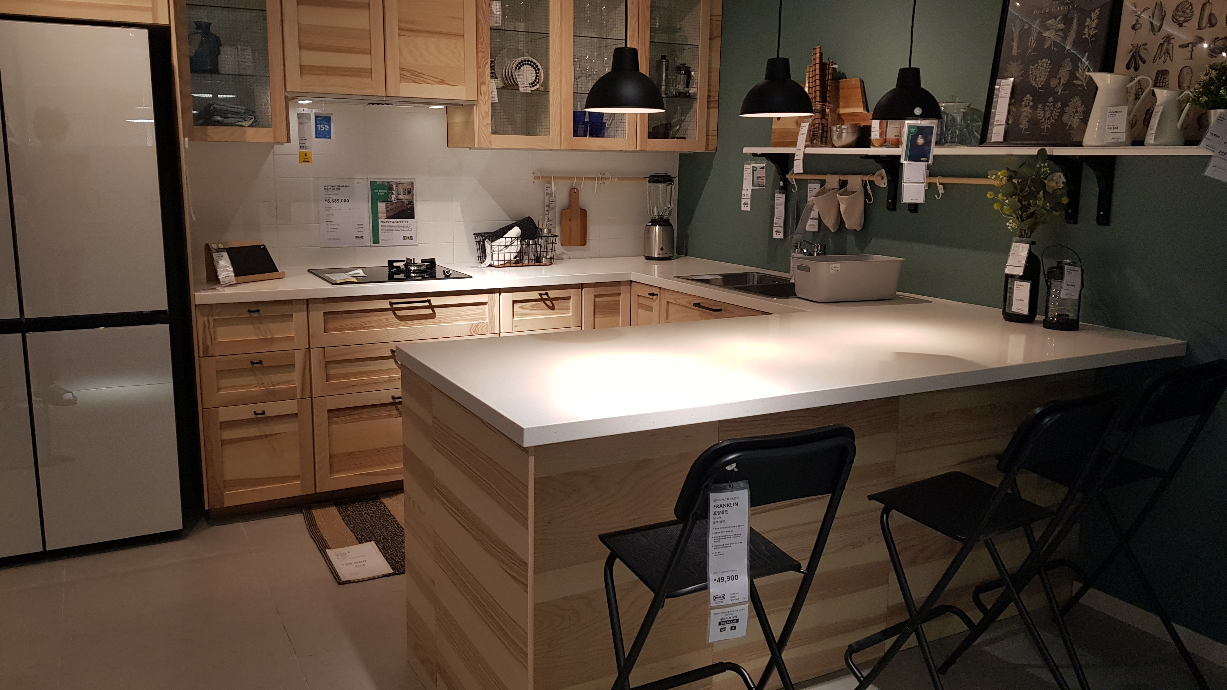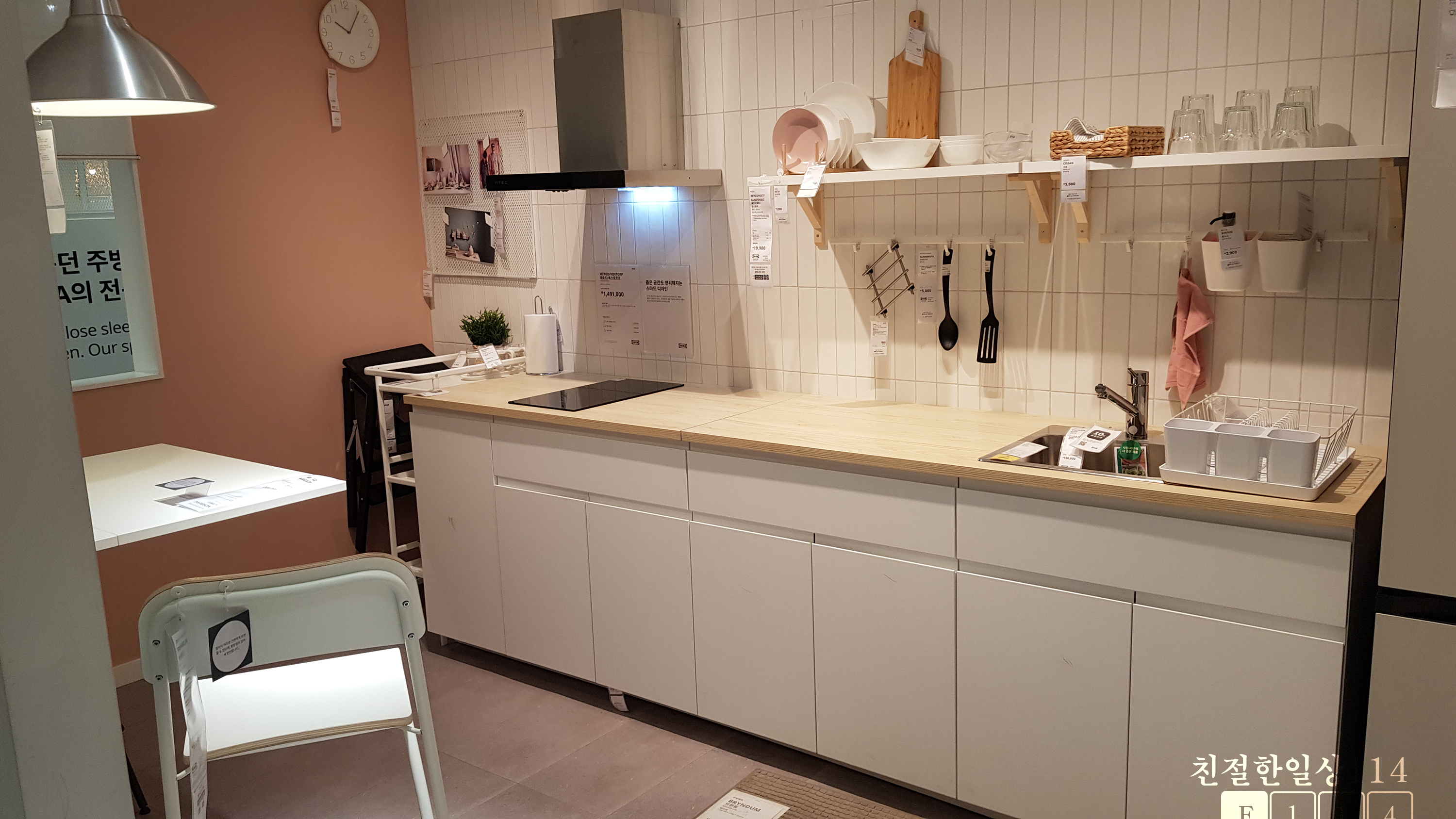 이케아 동부산점에 들렸다가 3층 쇼룸에서 디자인해 놓은 주방을 보았다. 이곳에서는 이케아에서 판매중인 자재와 물건들로 주방을 인테리어하고 꾸며놓았는데 깔끔하고 모던하게 해두어 공간마다 눈길을 사로 잡는다.