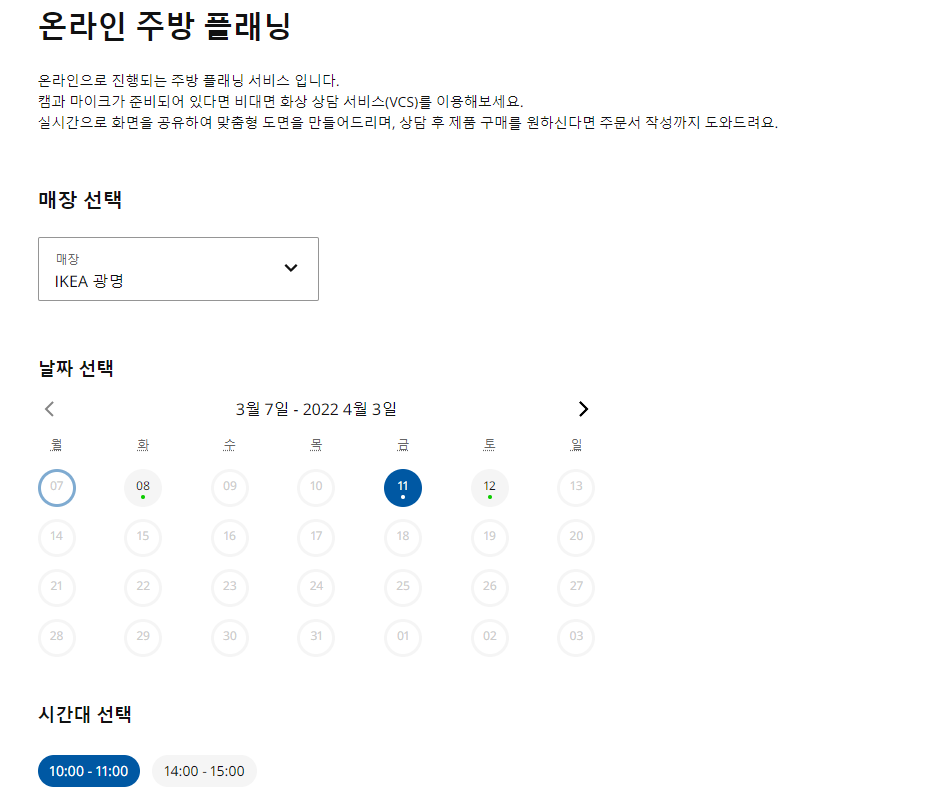 이중에서 제일 먼저 무료로 받아볼 수 있는 1번의 주방 플래닝 예약하는 방법을 알아본다.