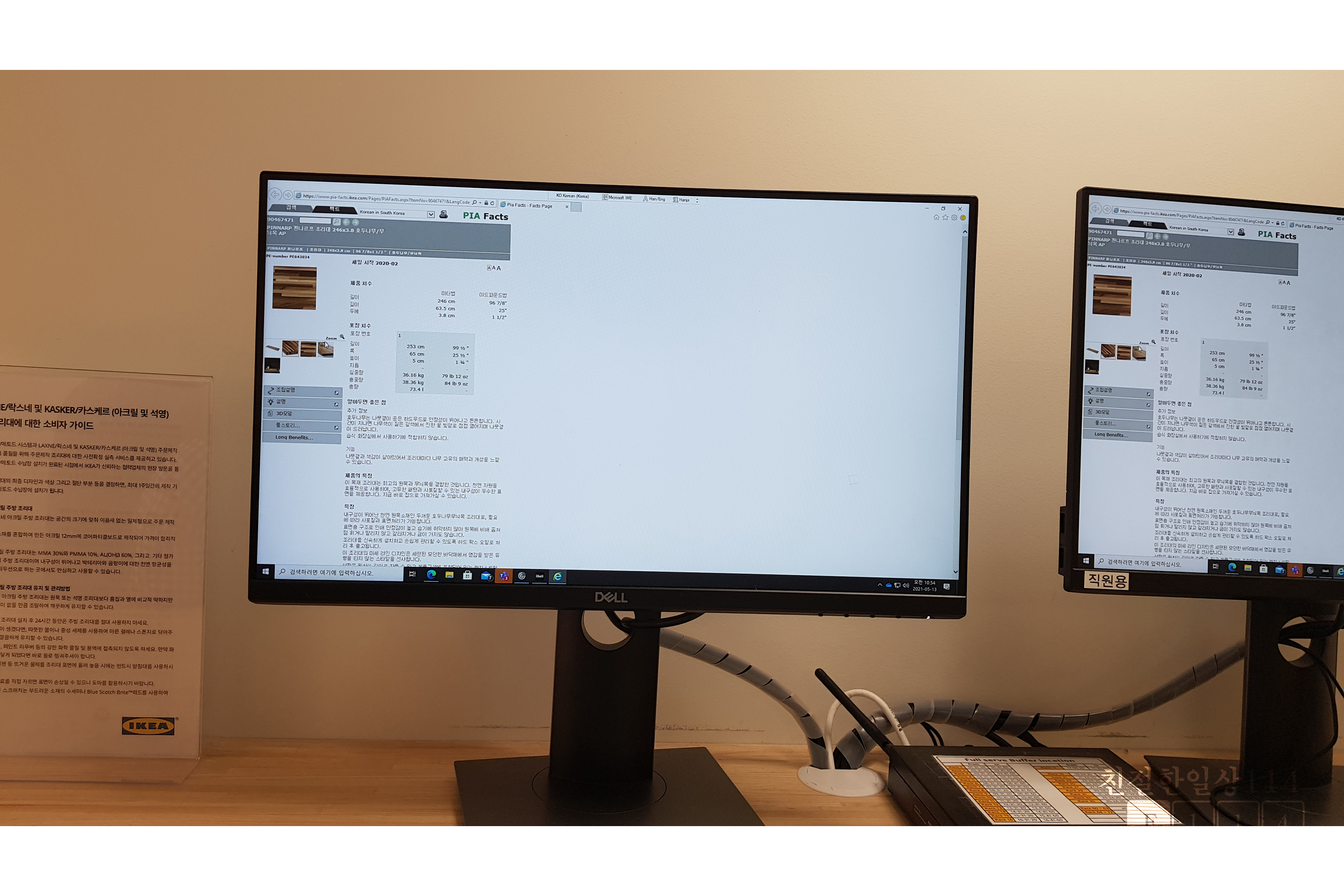 이케아에서 견적을 받아보고 나중에 알게 된 사실로 이케아서 보았던 원목으로 보이는 싱크대 상판은 전체가 나무로 된 통원목이 아니다. 속은 합성목재(PB)에 무늬목을 표면에 5mm 정도 입힌 것이다.