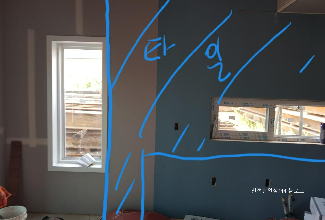실측때 현장에 방문하는 플래너에게 타일 붙일 높이(포인트)를 잡아달라고 요청해야 한다. 싱크대는 타일공사와 마루공사가 끝나고 집 시공 마지막 단계에 설치된다. 따라서 싱크대를 설치하는 곳에는 타일을 붙일 필요가 없으므로 싱크대의 상판 높이와 전체 길이를 표시해 달라고 요청해 둔다.