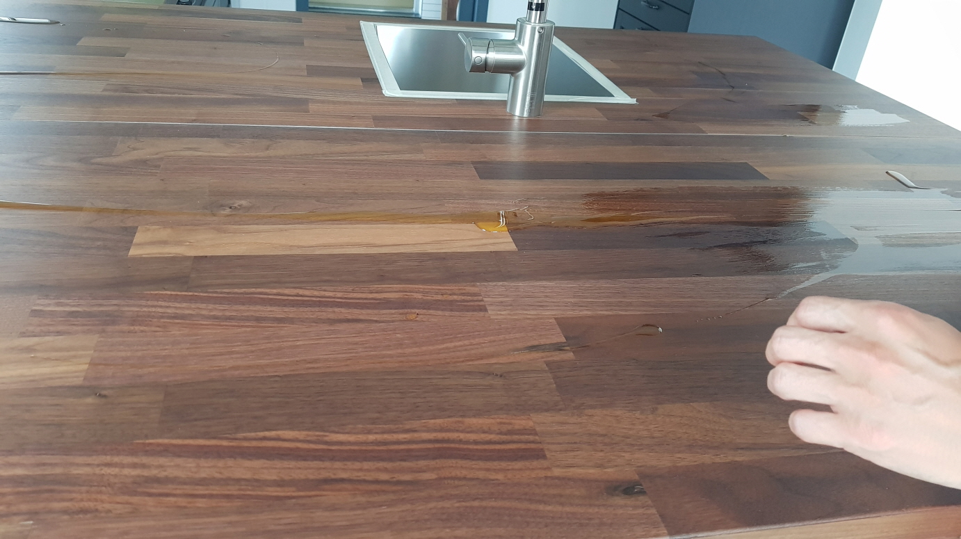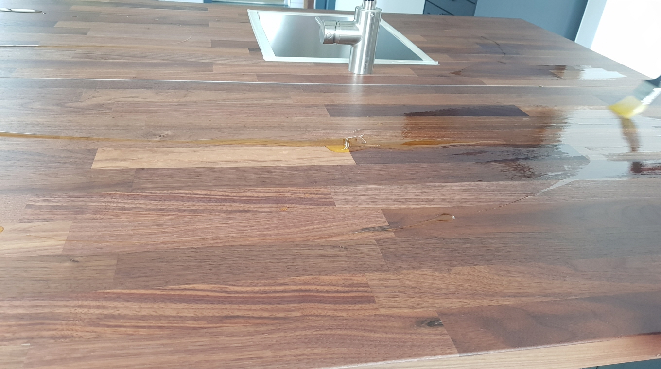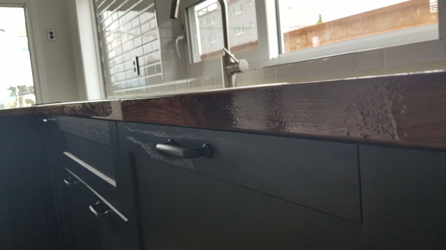 싱크대 견적과 설치 과정에서 설명을 듣기로 조리대 상판이 호두나무 재질의 무늬목 이기에 규칙적으로 우드보호 오일을 발라서 관리를 해줘야 한다고 한다.
