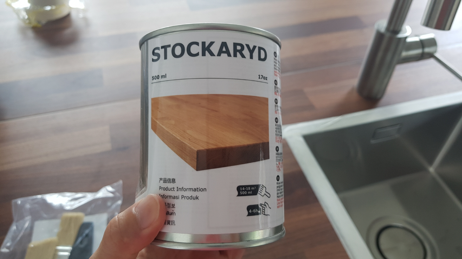 이케아 주방코에서 싱크대 상판에 바를 오일 STOCKARYD/스토카뤼드를 샀다. 한통에 용량은 500ml이며 후기를 보니 2~3번은 충분히 사용할 수 있다고 해서 한통만 구매했다. (이번에 오일칠을 하며 1/3 정도를 사용했다)