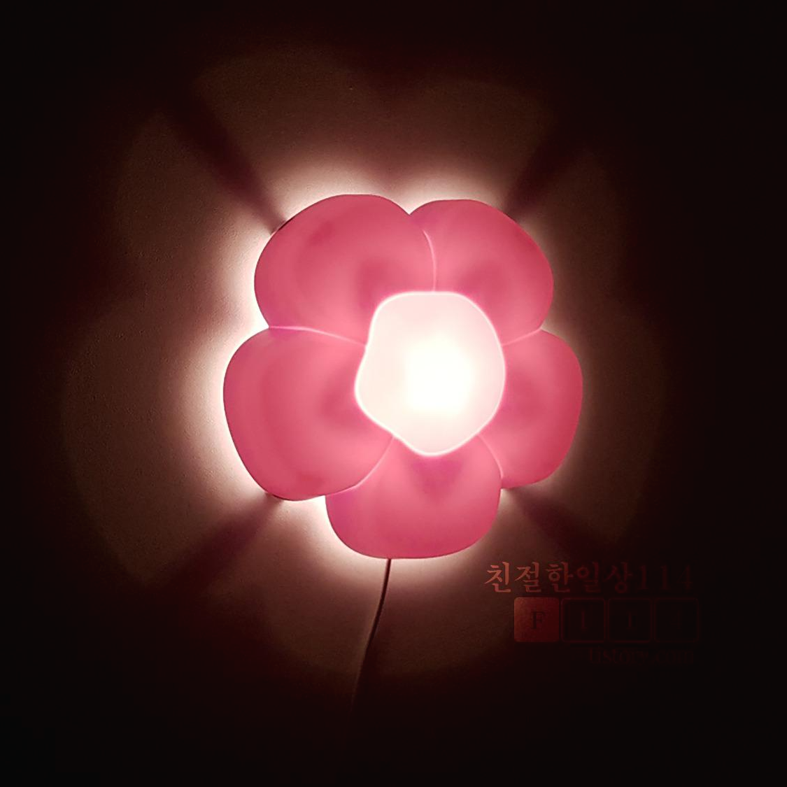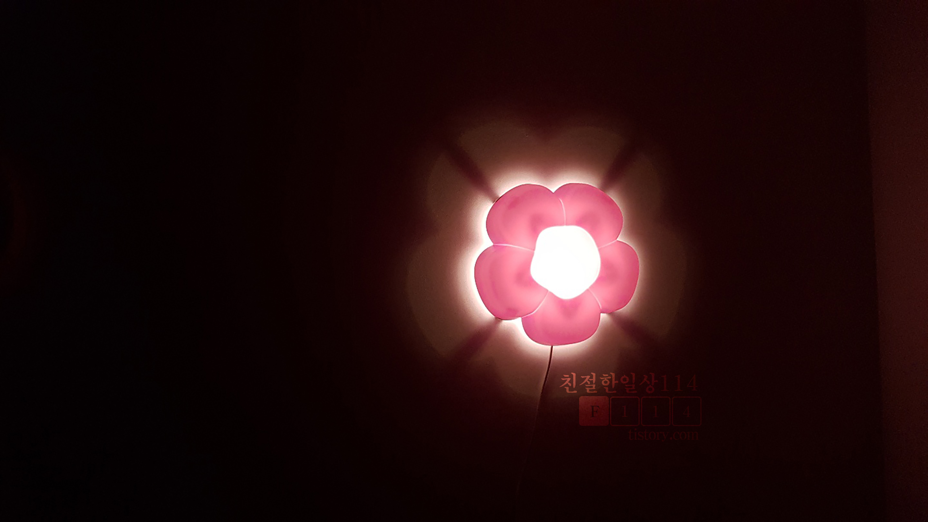 이 수면등을 달고서 켜주니 딸아이가 매우 좋아했다. 꽃은 별로 안좋아하지만 핑크색을 좋아하는 여자아이라서 여러 디자인중에 핑크색을 골랐던게 적중했다.
