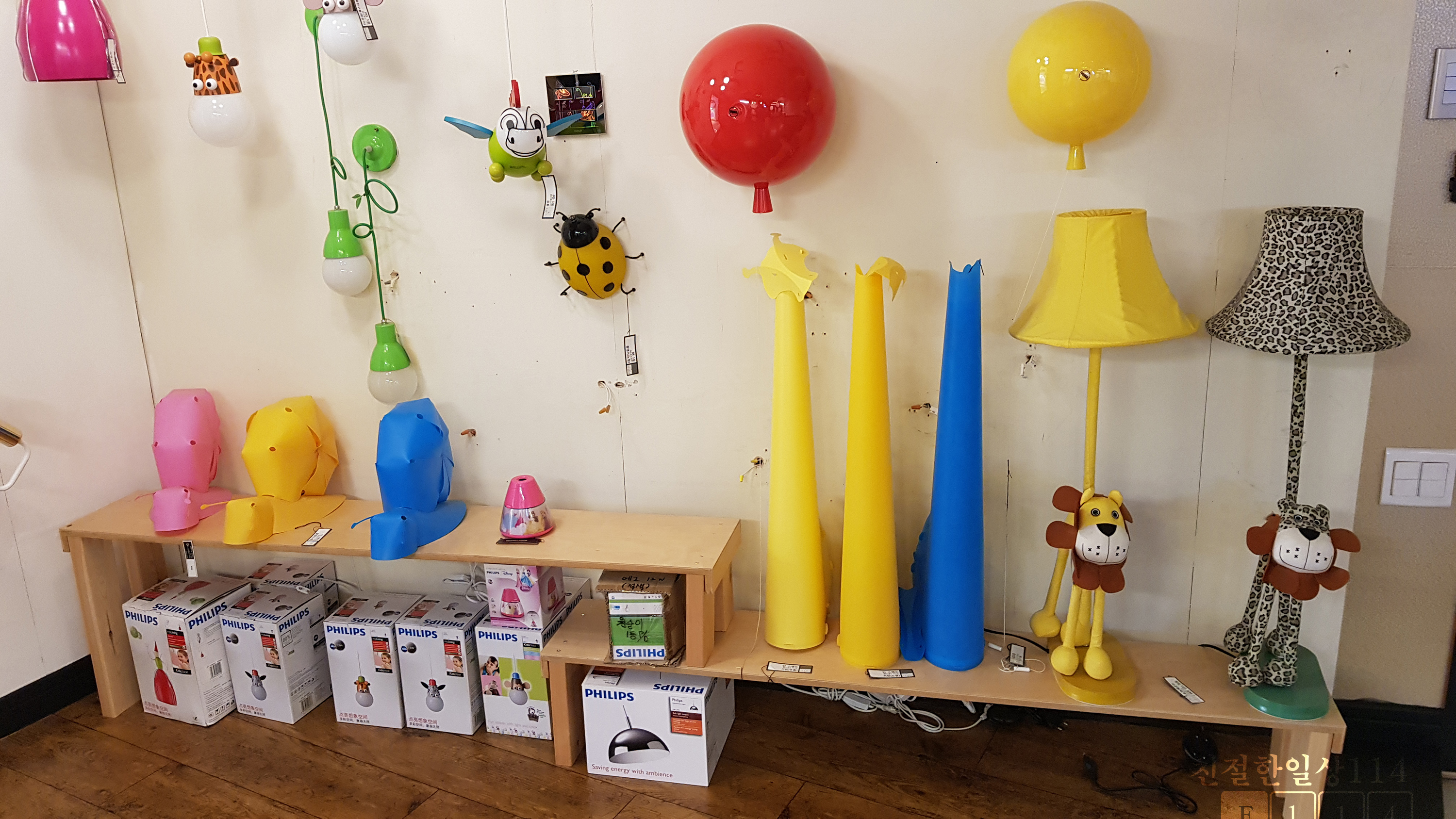이 조명집에서는 벽부착형으로 무당벌레나 풍선정도가 적당했다. 하지만 딸아이의 취향은 아니여서 패스. 스탠드형은 침대맡에 놓을 공간이 있다고하면 좋을 듯 하지만 지붕이 있는 침대라서 제외해야 했다.