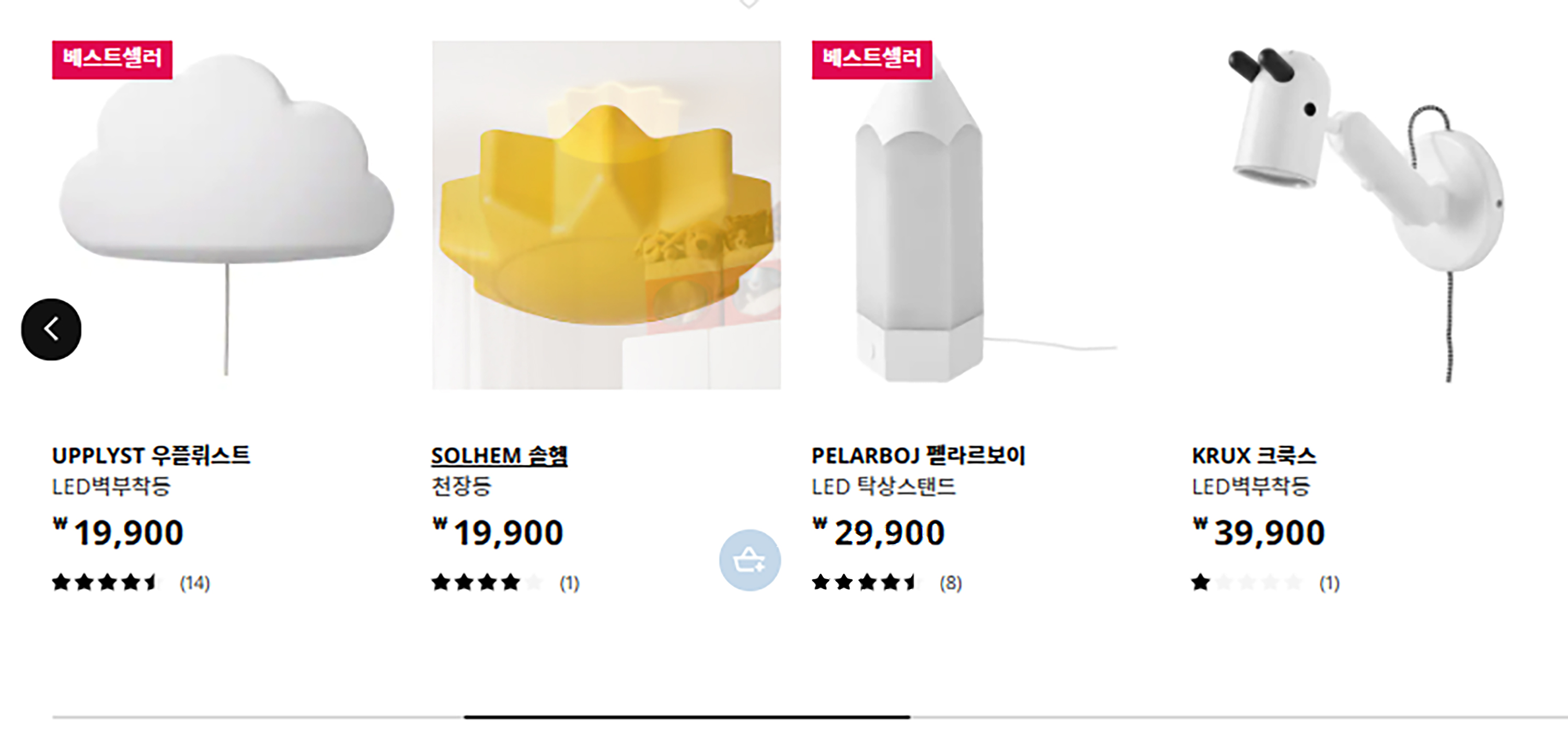 이케아에 쇼룸층에서 실제로 켜진 조명을 보니 꽃모양과 구름모양이 적당해 보였다.