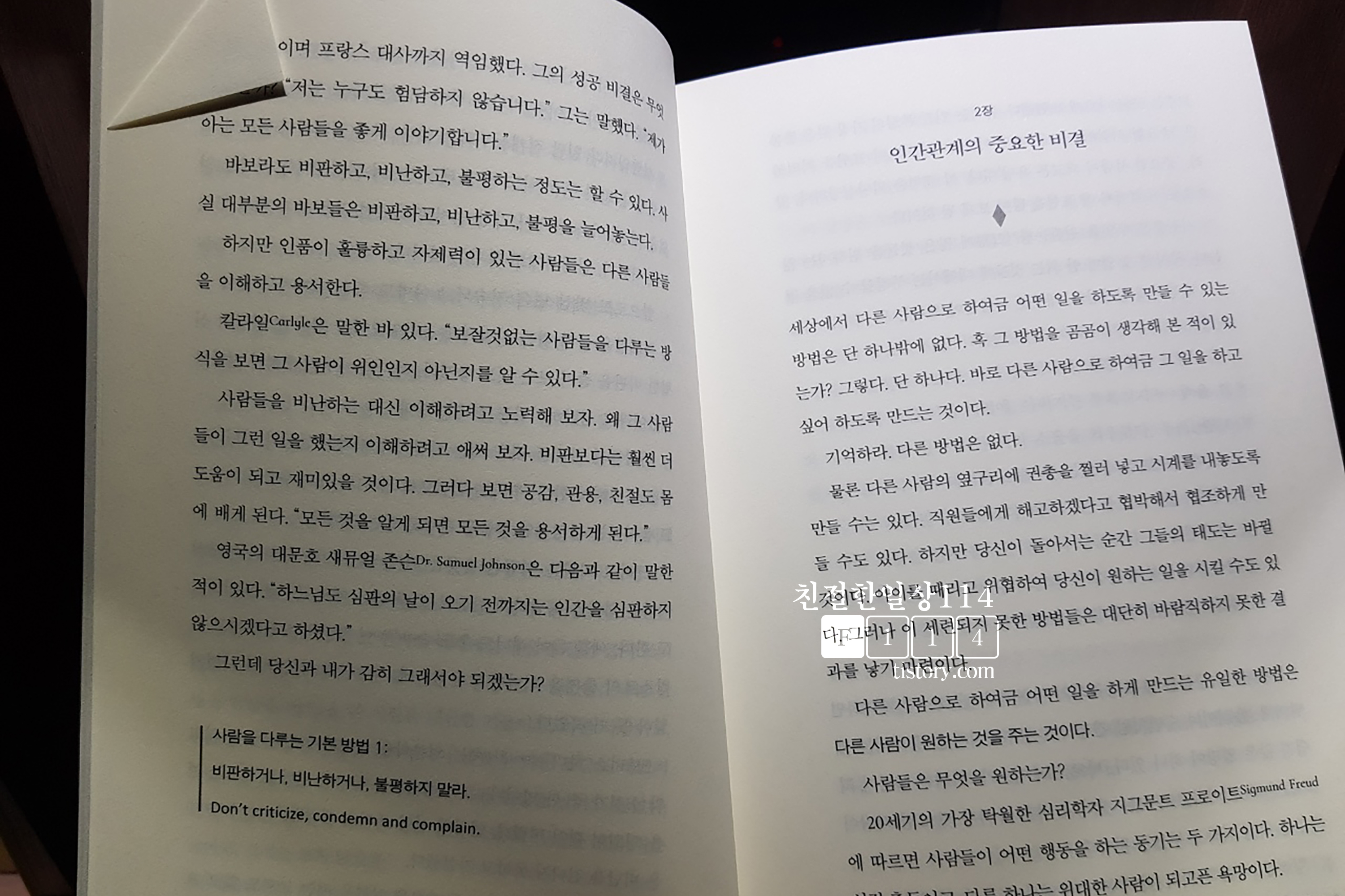 인간관계론이라고 해서 굉장히 딱딱하고 재미없을 것으로 생각했었다. 그래서 대학생 시절 당시 읽어볼 생각도 못 했었는데 막상 책을 펼쳐 읽어보니 상당히 재밌고 유익하다.