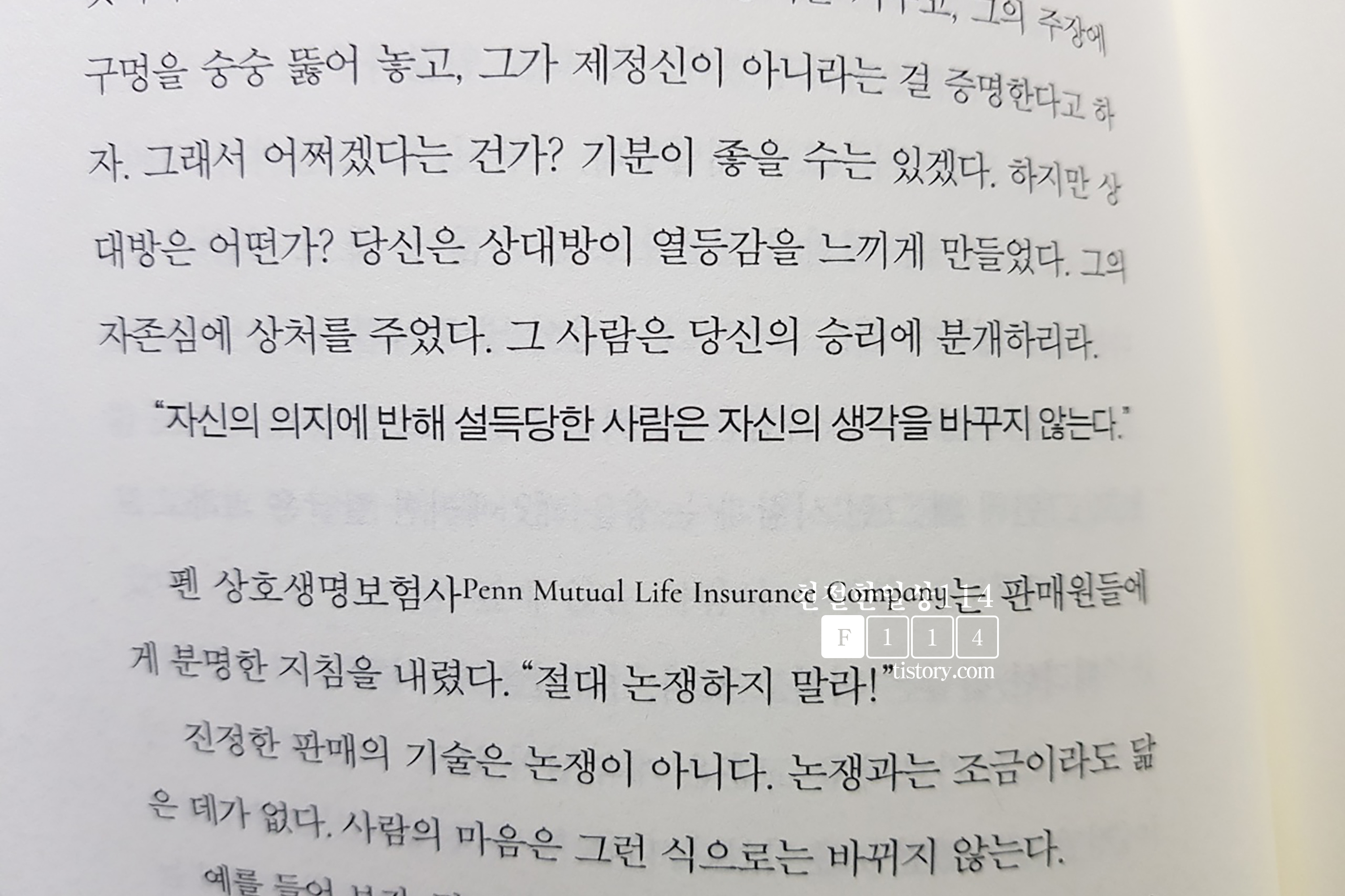 살아가면서 항상 좋은 일만 있을 수만은 없다. 의견이 달라 언쟁도 하고 다툼이 있기도 하다. 책에서는 그런 논쟁이 있을때 어떻게 풀어나가면 상대방을 적으로 만들지 않고도 내가 원하는 바를 얻을 수 있는지 알려준다.