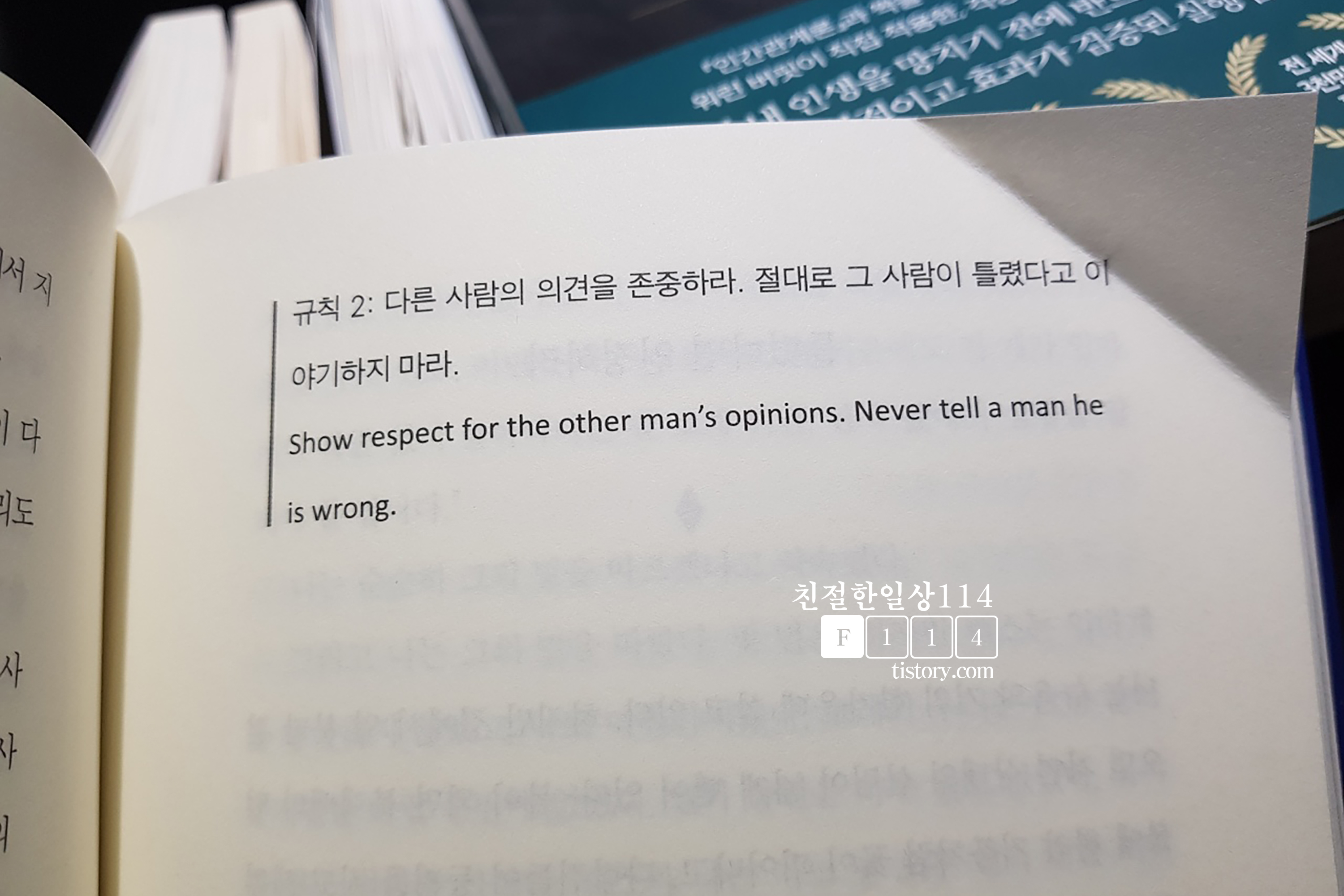 그리고 두번째로 '다른 사람의 의견을 존중하라, 절대로 그 사람이 틀렸다고 이야기 하지 마라'