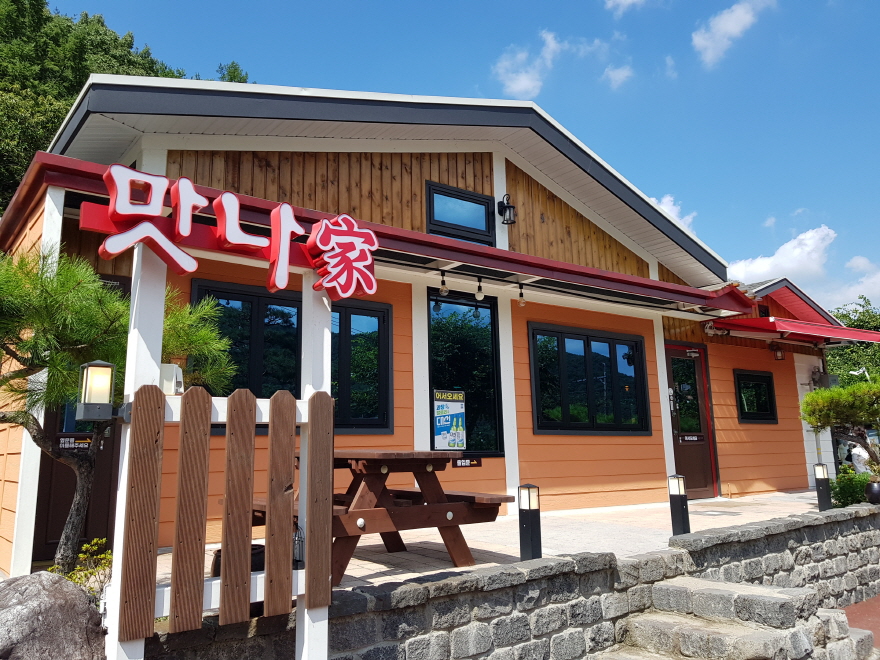 차에서 내려 식당건물을 본다. 목재로 외벽을 두른 박공 모양의 건물로 식당이 아닌 정겨운 가정집 같은 느낌이 든다.