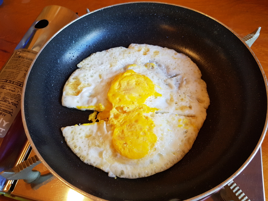계란후라이를 직접 해서 코타리찜과 같이 먹는 시스템이다. 계란후라이는 탱글하게 잘 할 자신이 있었는데 이날은 불조절에 실패했다.