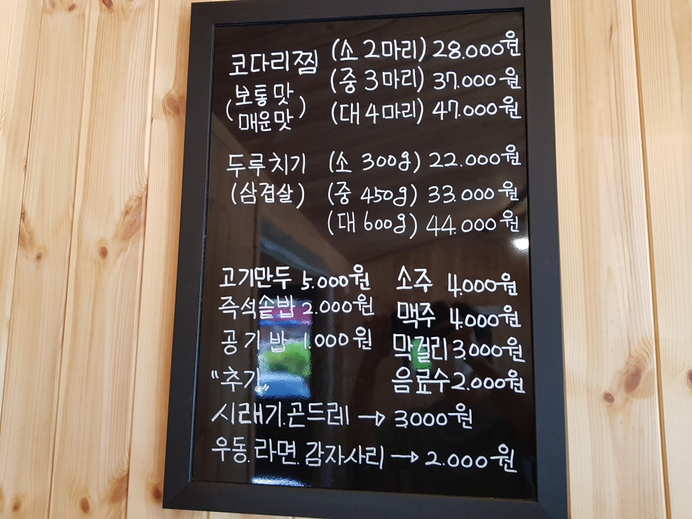 코다리찜 소 28,000원 / 중 37,000원 / 대 47,000원