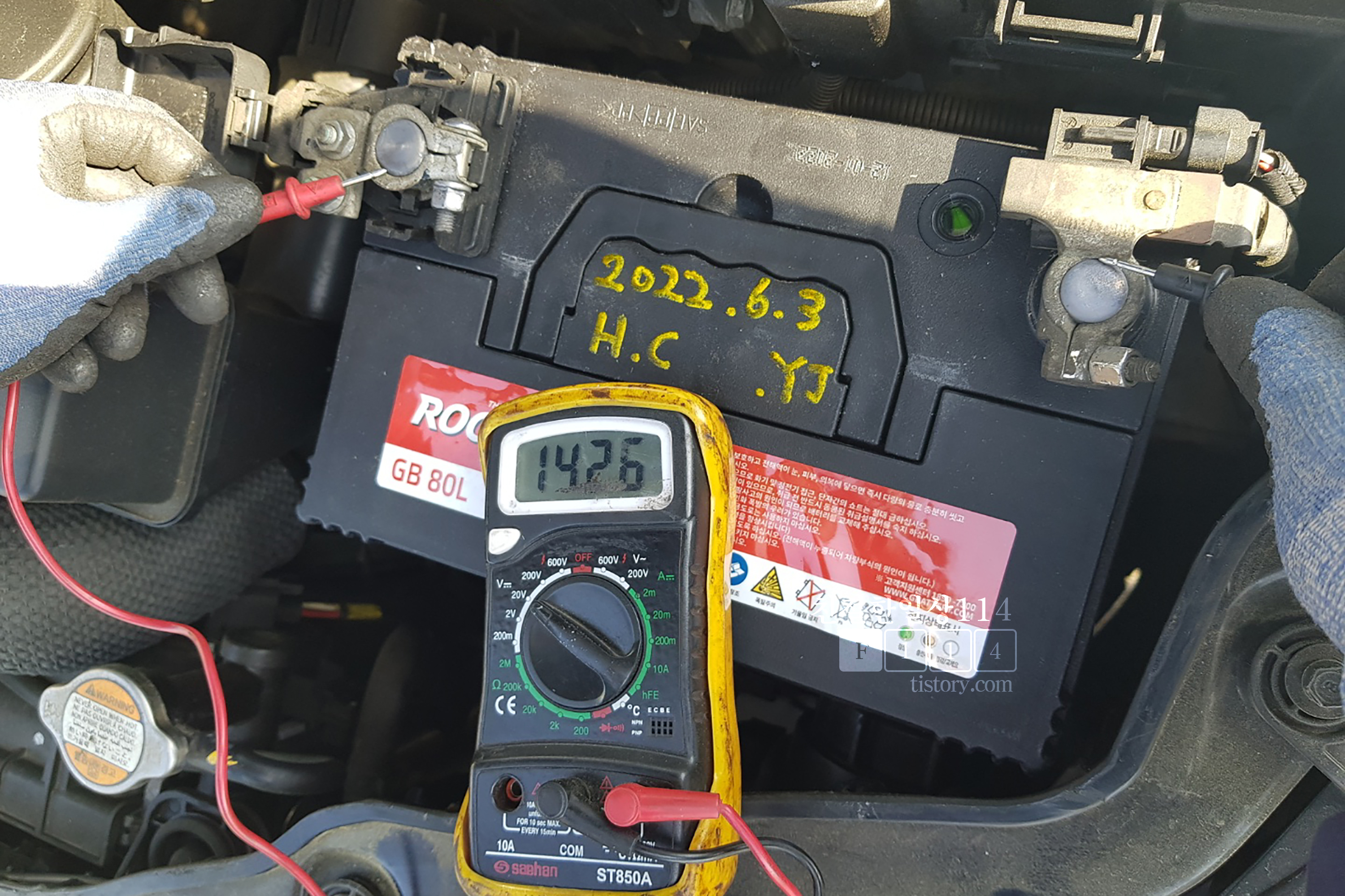 배터리 전압은 측정기가 있어야 알 수 있으므로 시동이 잘 걸리는 평소에는 신경쓰지 않아도 된다. 카센터에 들렸을때나 고장출동 서비스를 받을때 한번씩 체크해보면 되겠다.