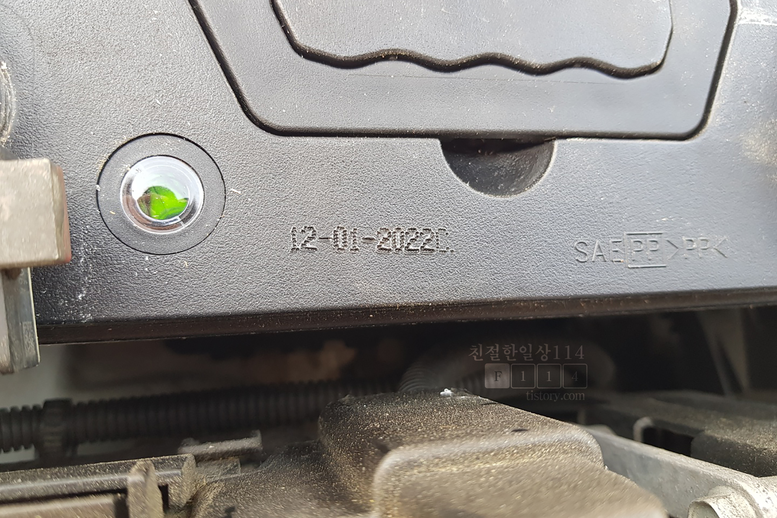 배터리의 제조일자는 배터리 상부에 찍혀져 있다. 이번에 교체한 배터리 제조일자는 2022년 1월 12일 이다.