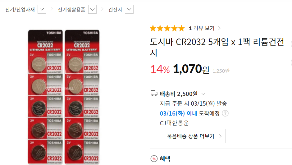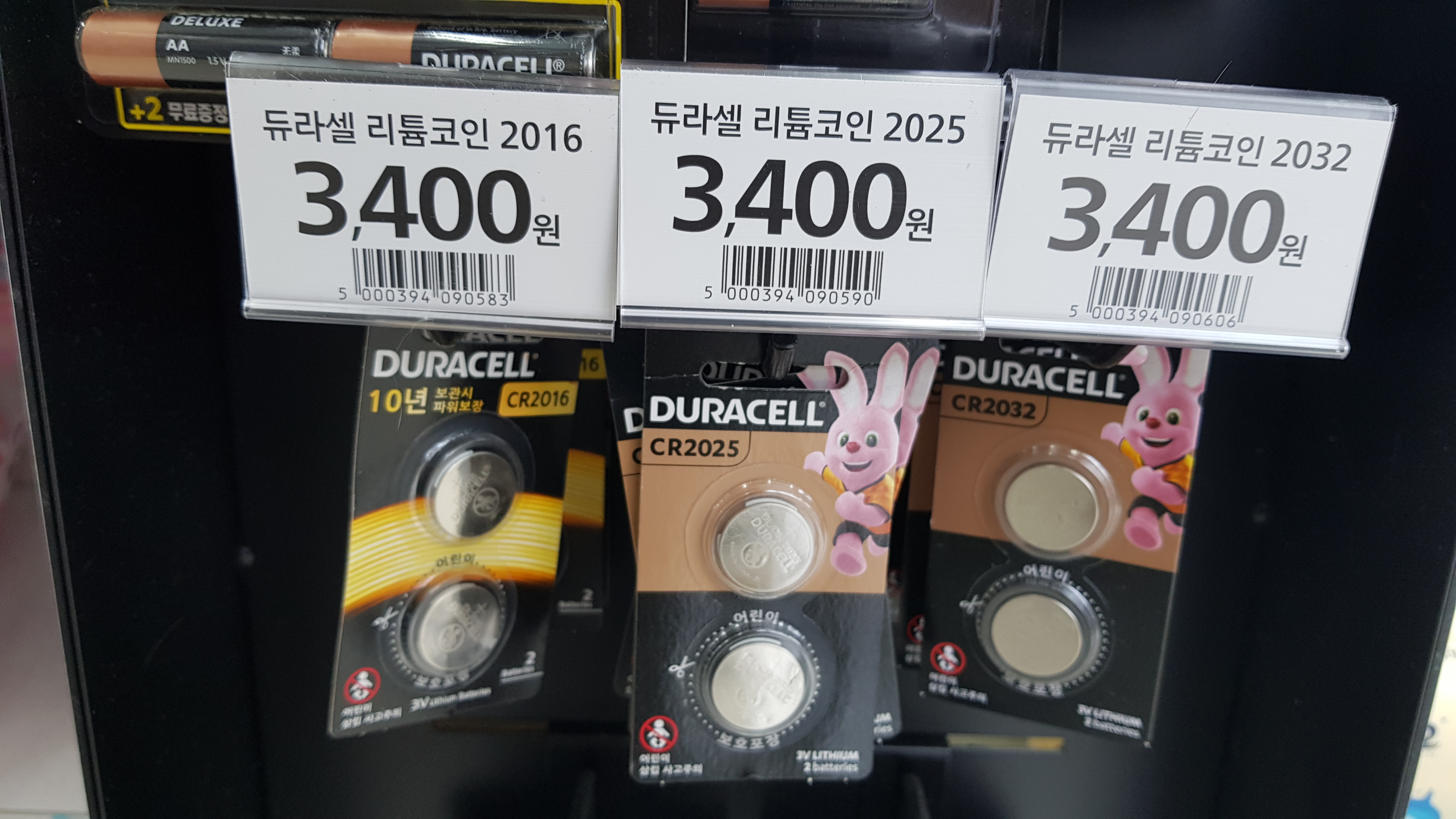다이소에서는 2개들이 1,000원에 팔고 있다. 개당 500원으로 온, 오프라인에서 가장 저렴한 곳은 다이소이다. 필자처럼 급하게 사려고하면 도처에 있는 가까운 편의점을 이용할 수 밖에 없겠지만 건전지 잔량이 얼마 안남은 낌새가 보인다 싶으면 미루지 말고 사서 교체하는 것이 좋겠다.