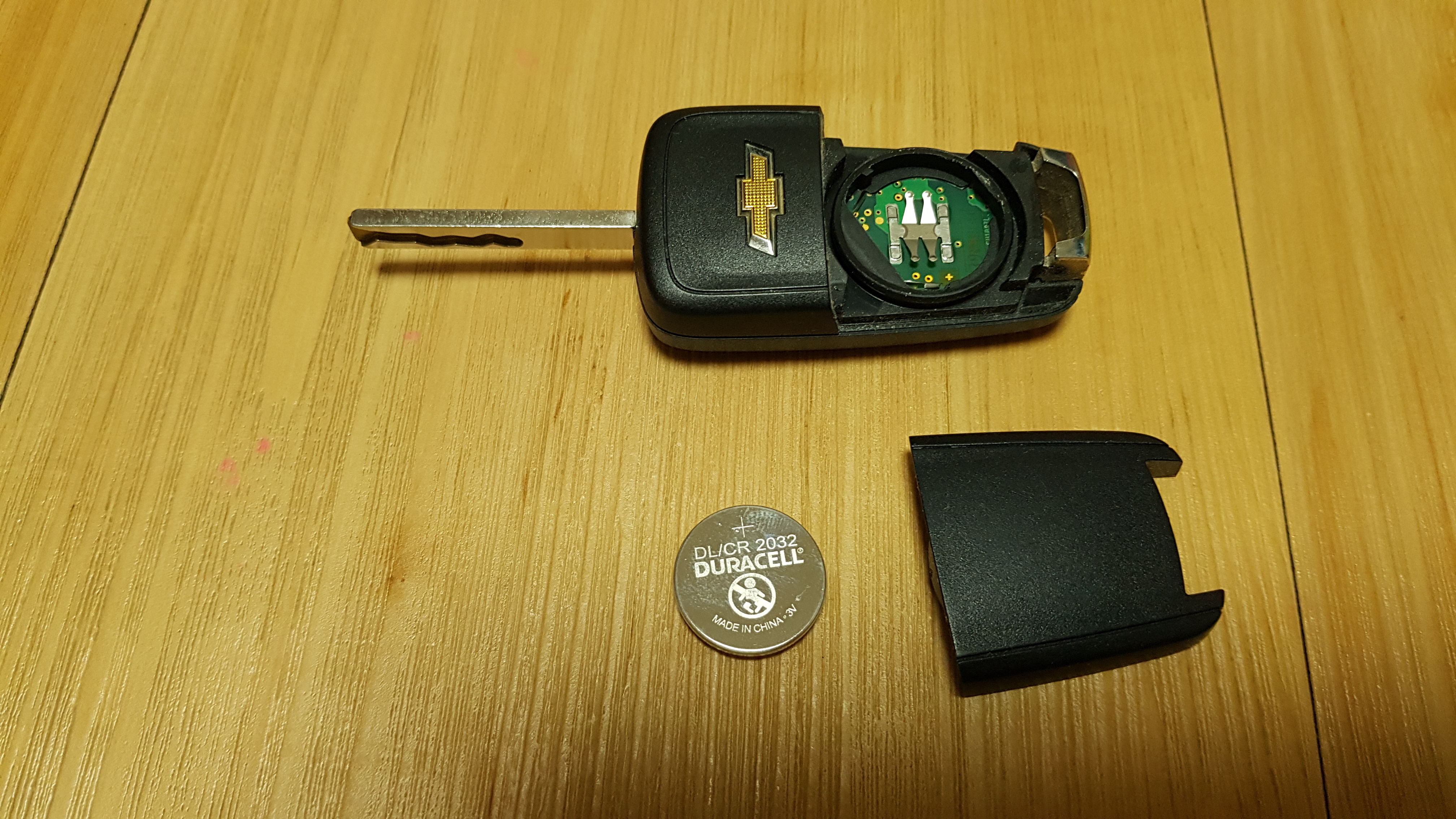 CR2032 건전지가 들어있다. 빼내고 새것으로 교체한 다음 키가 잘 작동하는지 확인한다.