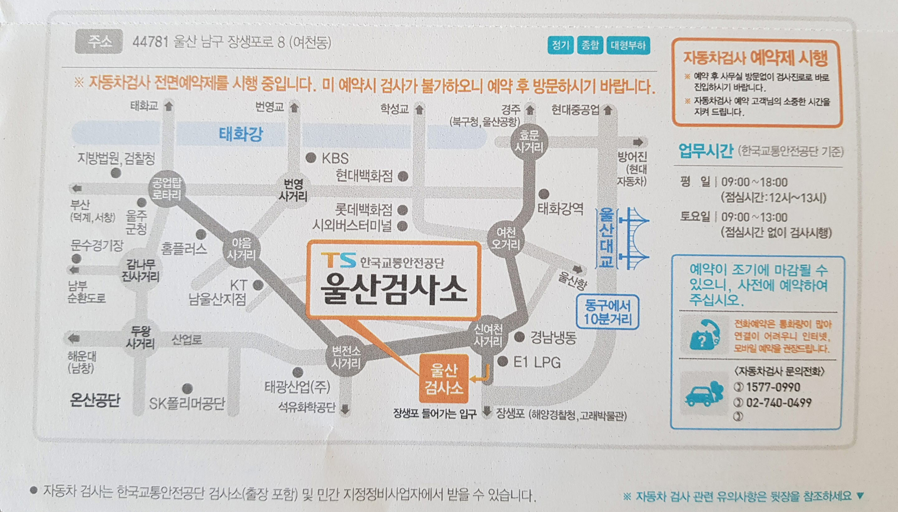 그러다 우편물 뒷편에 검사기관안내에 출장검사장이라는 문구가 눈에 띄었다.
