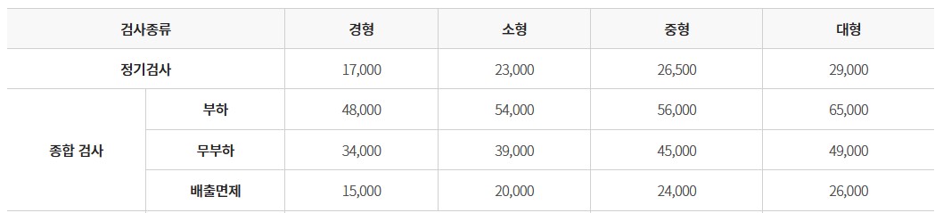 그래서 알아보았다. 자동차 종합검사와 정기검사는 어떻게 구분되는지와 자동차 종합 정기 검사 수수료(요금/비용) 그리고 자동차 검사를 받지 않았을 경우 물게 되는 과태료까지도 한 번에 정리해보고자 한다.