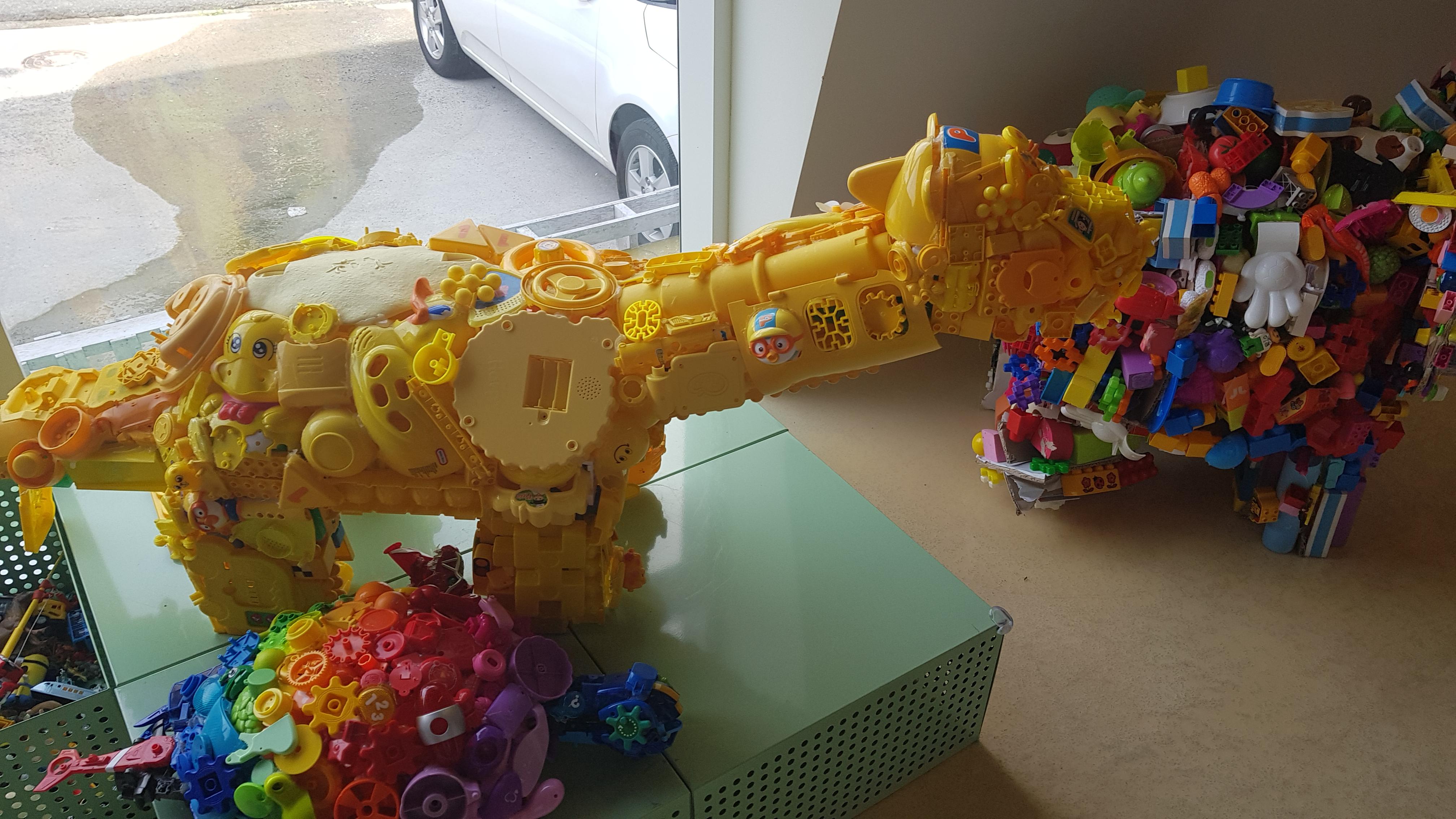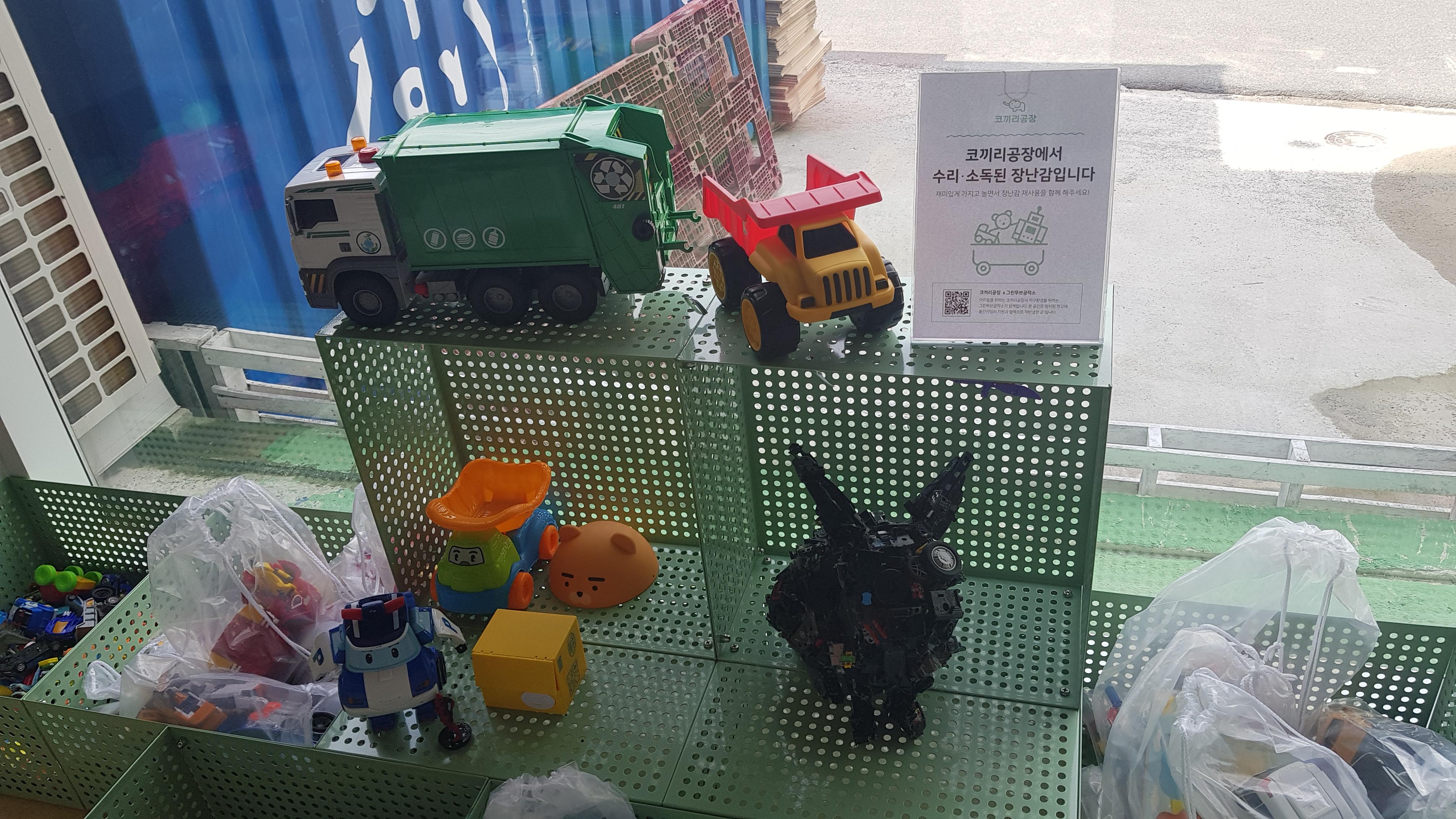 안내해주시는 분이 안쪽으로 안내해주며 장난감을 하나 골라서 가도 된다고 한다. 이 장난감은 코끼리공장에서 기부 받아 수리하고 소독한 장난감이다.