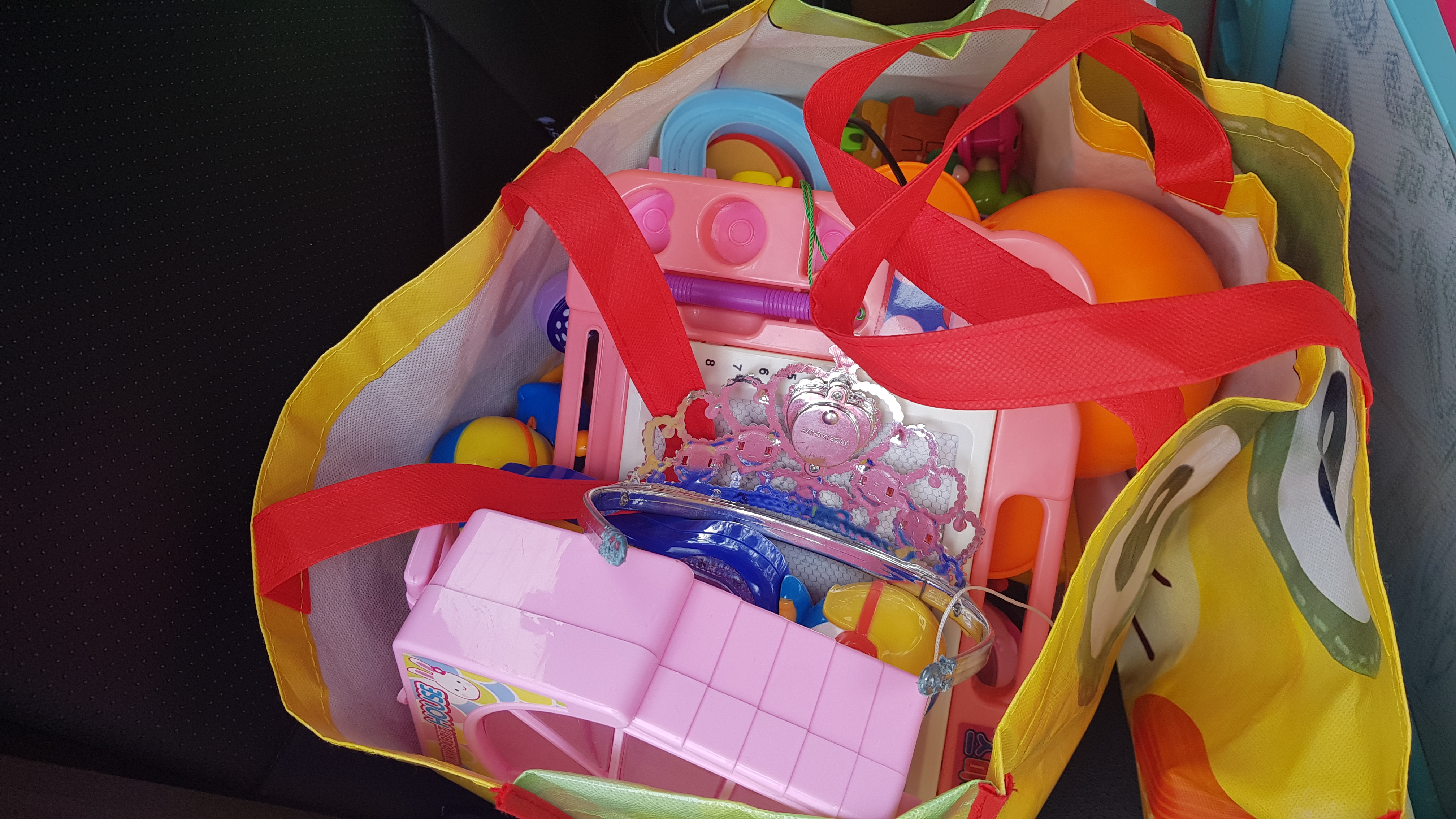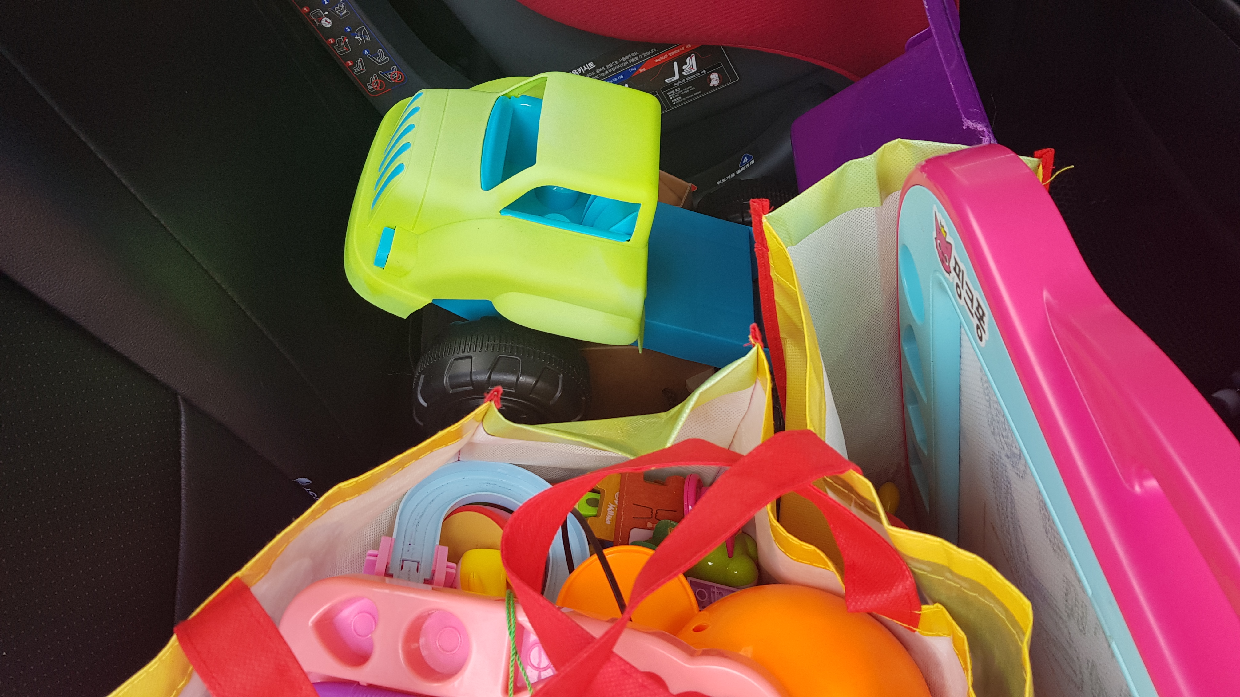 이번에 분류를 하고나니 큰 2가방에 가득찰 정도로 장난감이 모였다. 차에 뒷좌석에 실어놓고 코낄 공장으로 향했다.