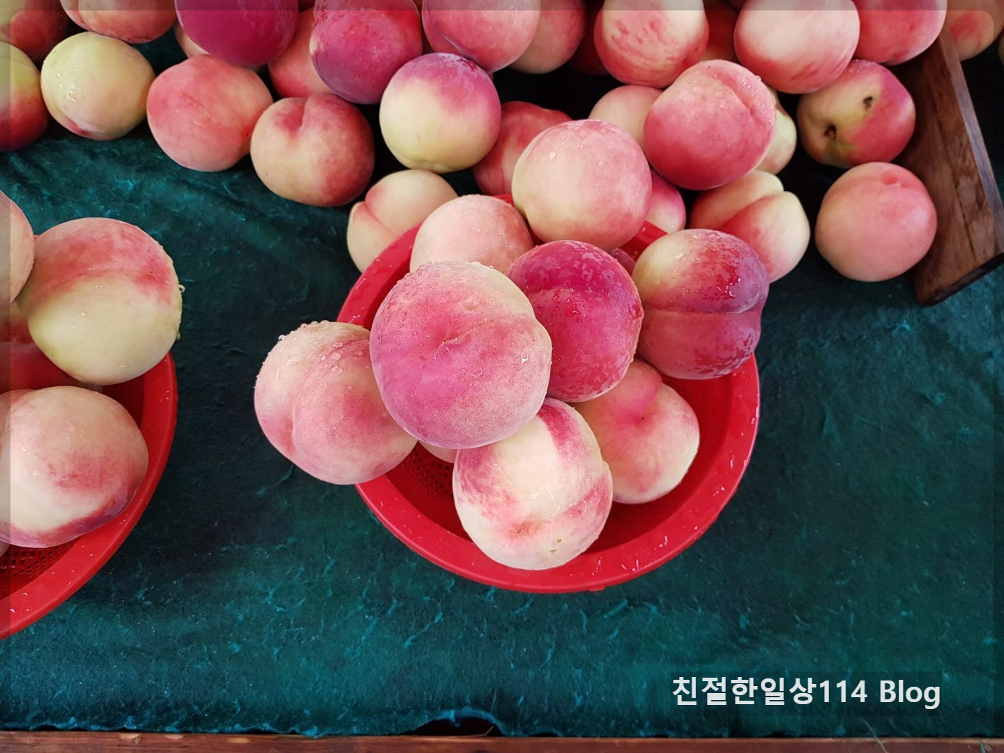 딱딱이 복숭아라고 써붙여놓은 복숭아도 한소쿠리 만원씩인데 백도보다는 1개씩 더 담겨있다. 갯수는 1개가 더 많지만 백도의 크기가 더 크다. 당도는 두 종류 같다고해서 딱딱이 복숭아로 산다.