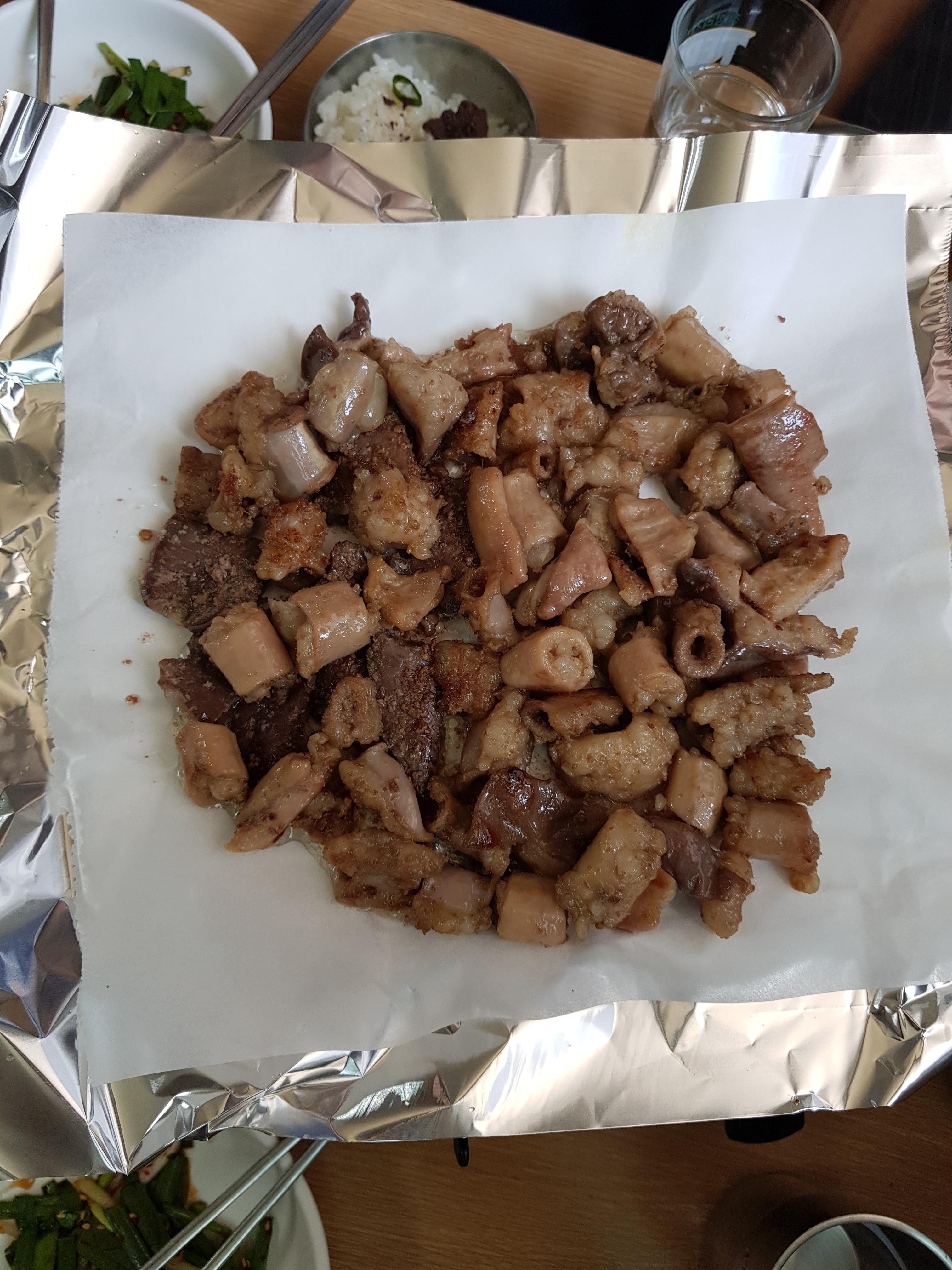 원조집에서 곱창전골과 곱창구이를 먹어보았다. 필자의 입에는 곱창구이에 선지국을 같이 먹는게 더 맛있었다. 고기는 구워서 먹어야 제맛인건지도..