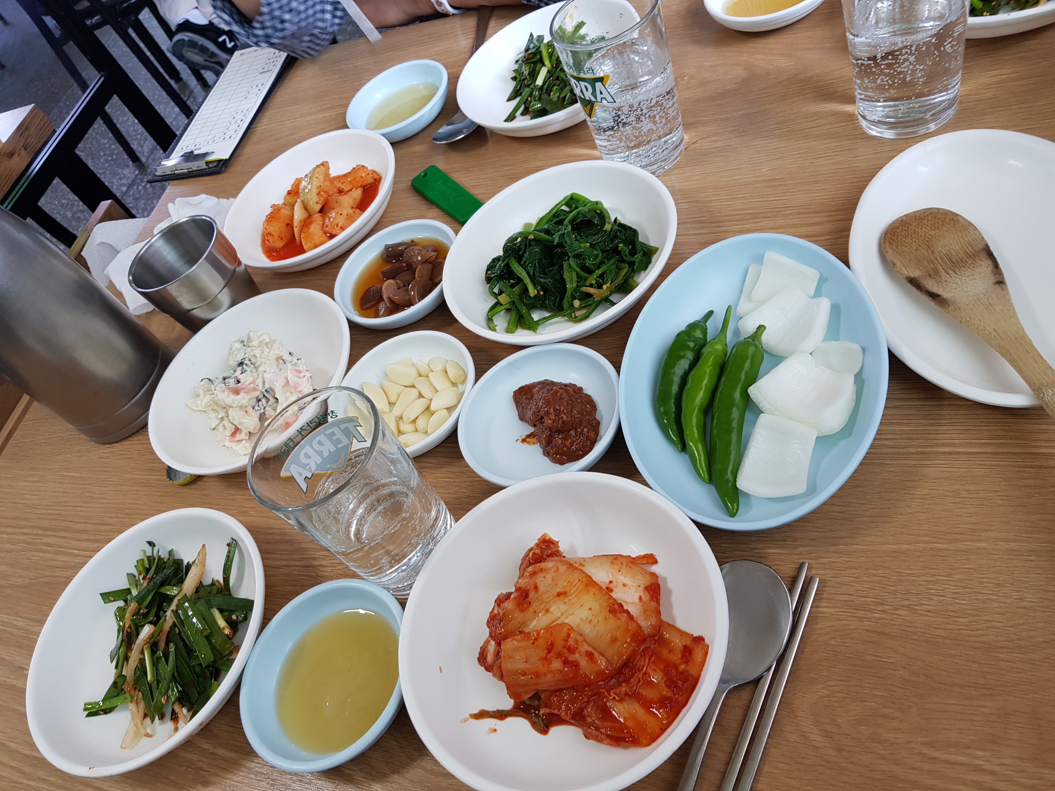 곱창전골을 시켰을때 보다 밑반찬가짓수가 더 많다. 기름장과 생마늘, 부추겉절이가 더 나온다. 마늘초절임과 마요네즈 샐러드가 맛있었는데 이번에는 부추겉절이에 밀렸다.