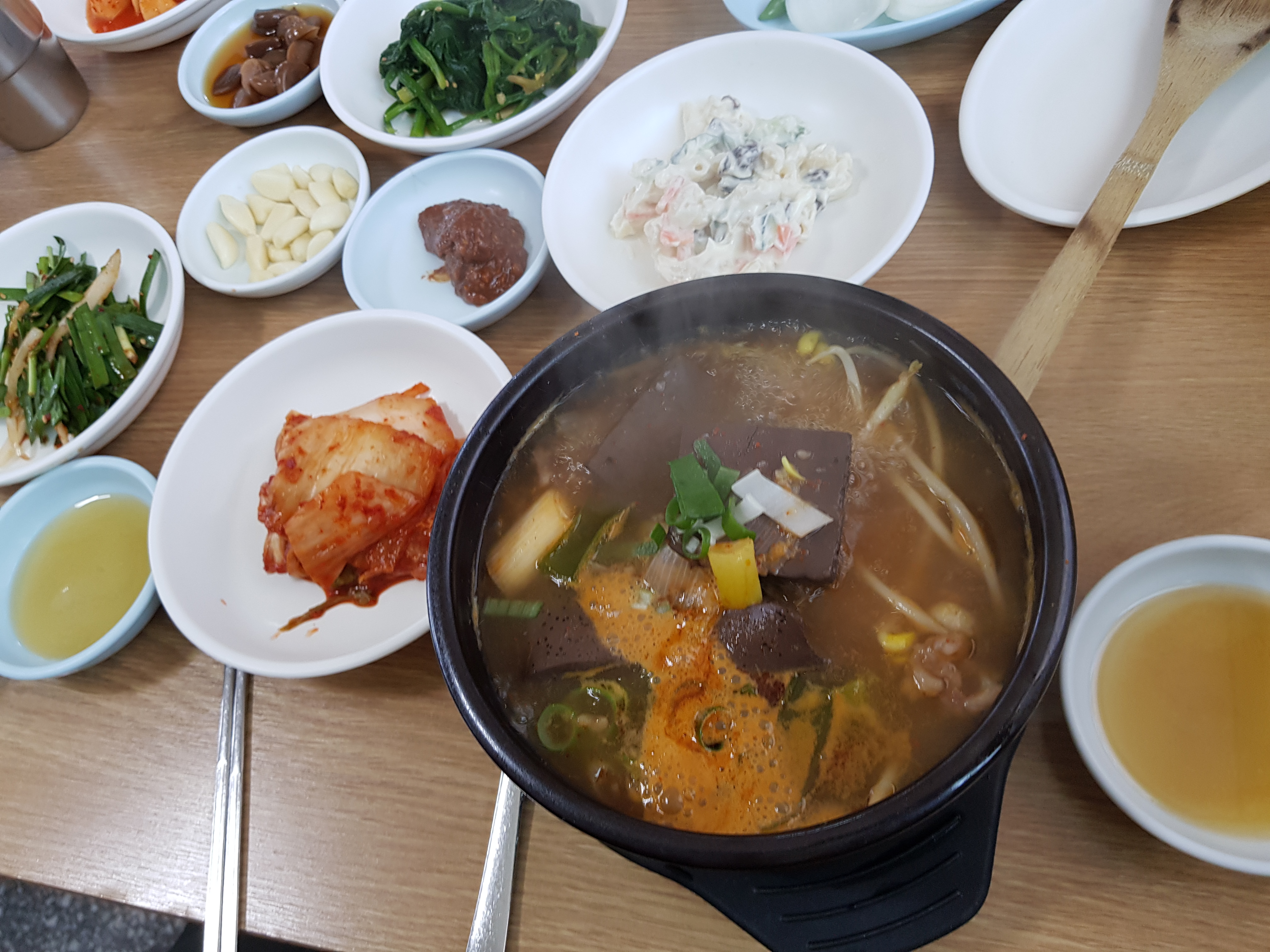 막 나온 선지국를 한번 휘 저어 선지를 한숟깔 떠본다. 두툼한 선지에서 김이 모락모락 올라오고 있다.