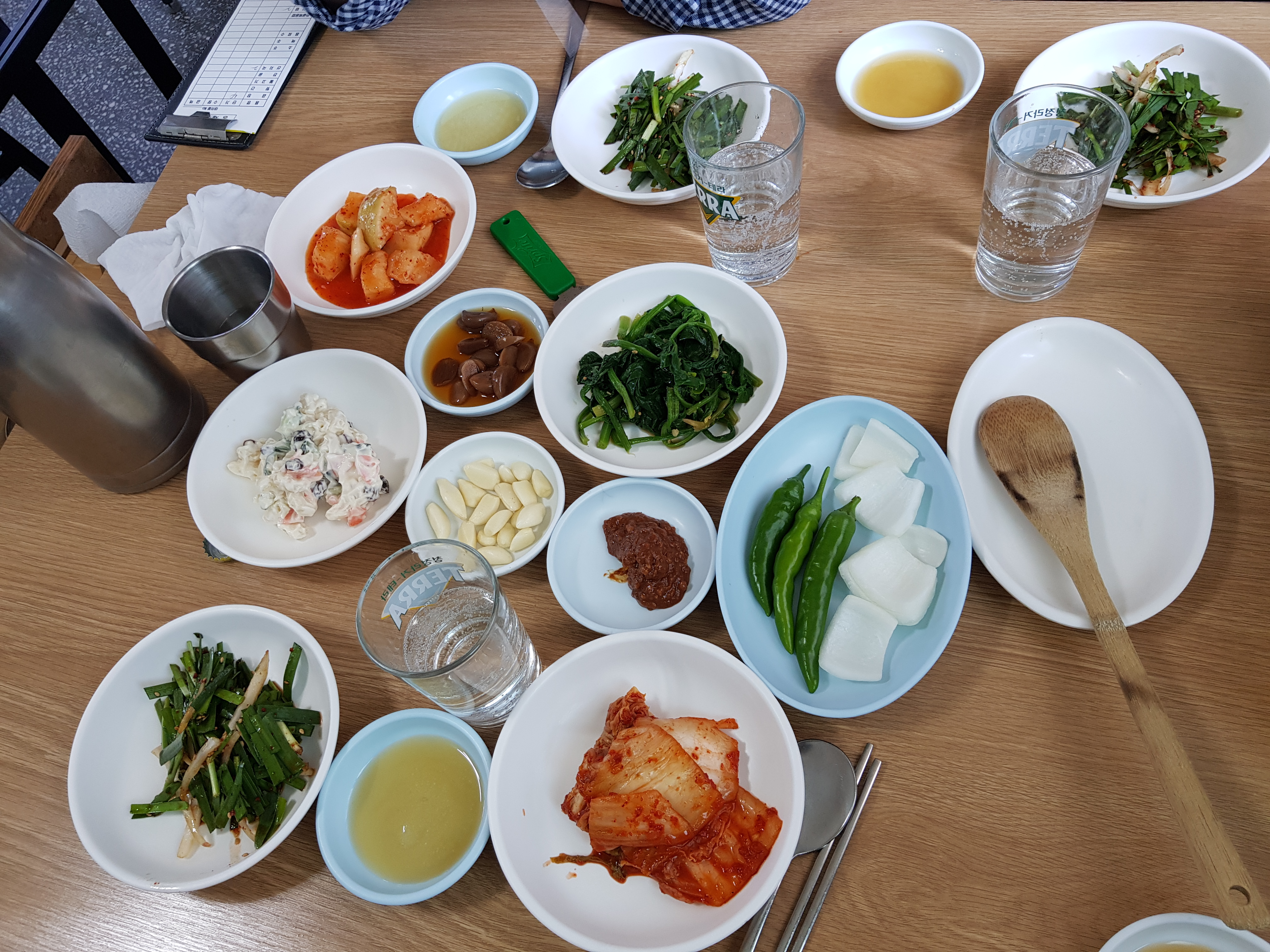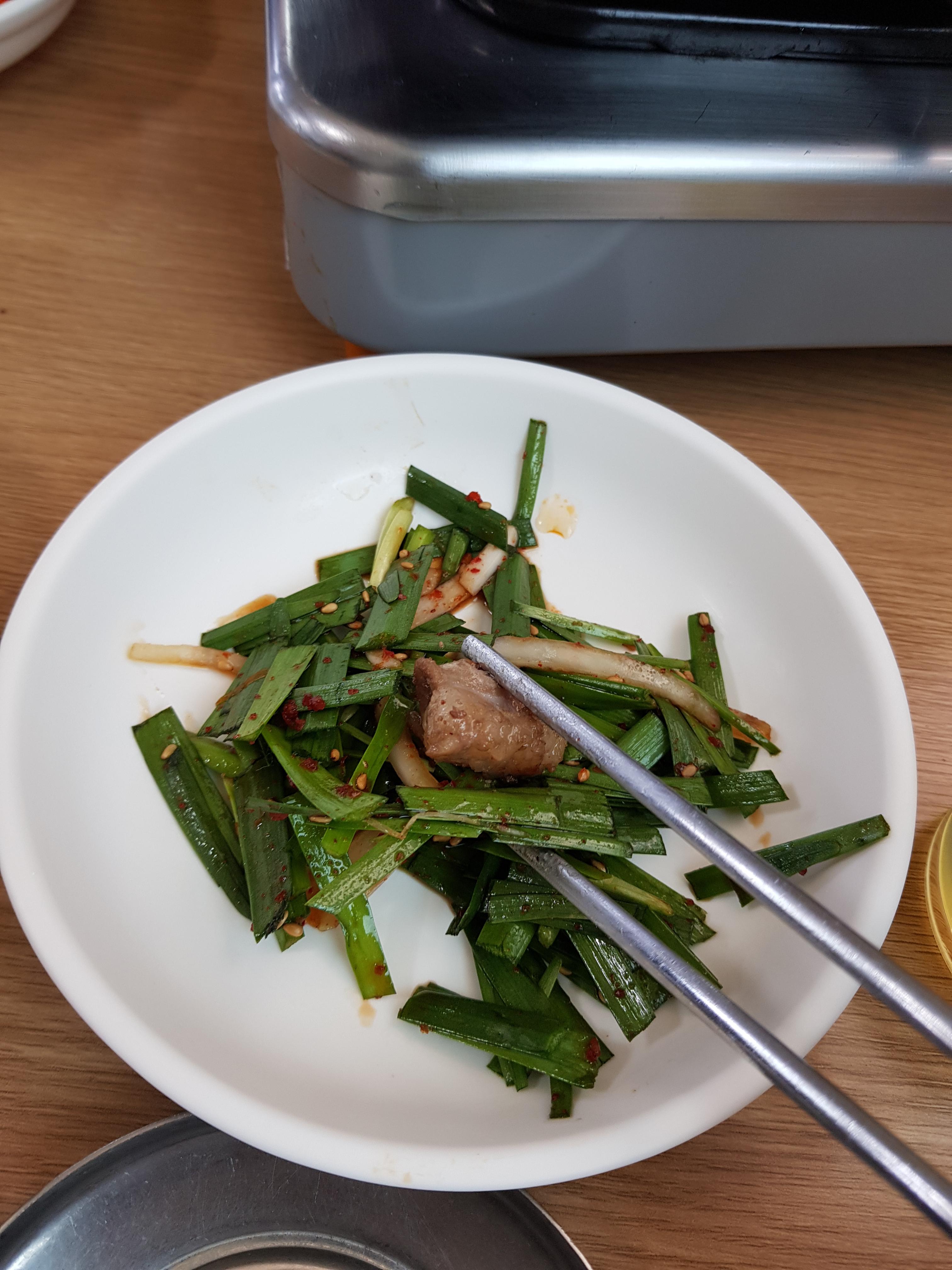 곱창전골을 시켰을때 보다 밑반찬가짓수가 더 많다. 기름장과 생마늘, 부추겉절이가 더 나온다. 마늘초절임과 마요네즈 샐러드가 맛있었는데 이번에는 부추겉절이에 밀렸다.