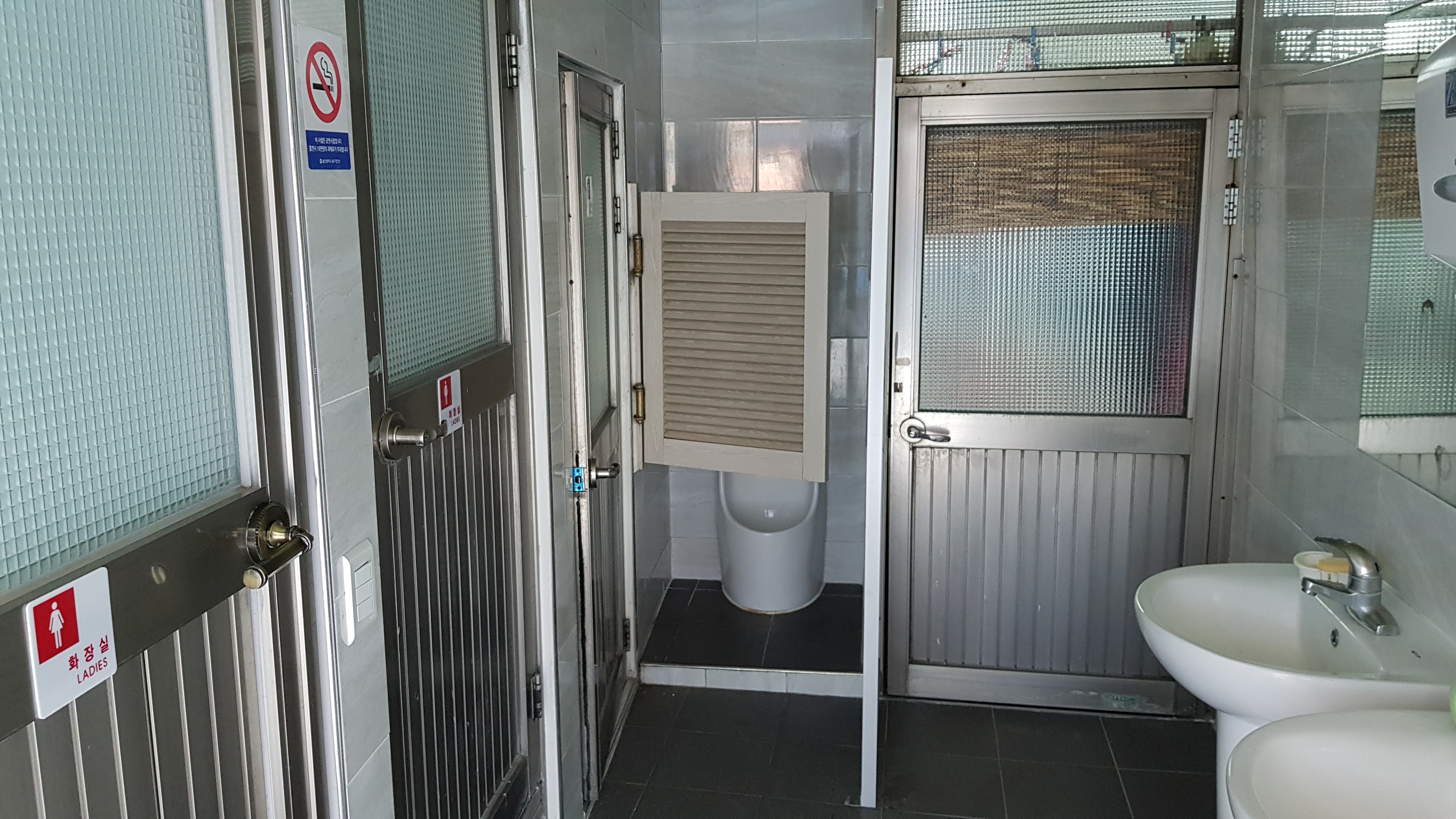 한 공간에 남녀 칸은 따로 되어있었지만 남자가 소변을 볼때 다른 이용자가 있다면 다소 신경쓰이고 불편할 수도 있겠다.