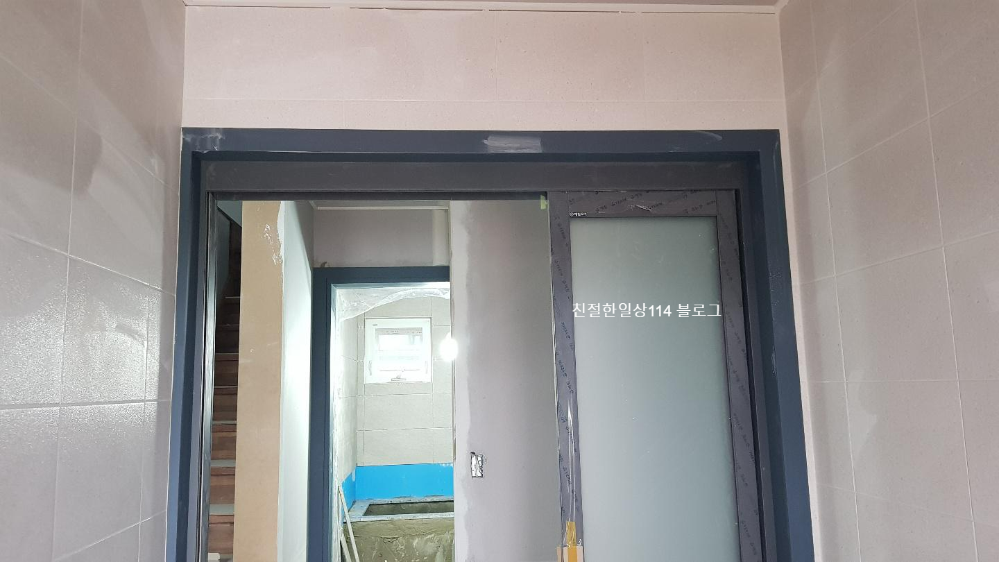 실내도어와 중문 제작 업체가 달라서 완전히 똑같은 색은 고를 수가 없었다. 가능한 중문을 도어와 비슷한 색상으로 선택했다. 시공하고나니 색깔이 거의 차이나지 않는다.