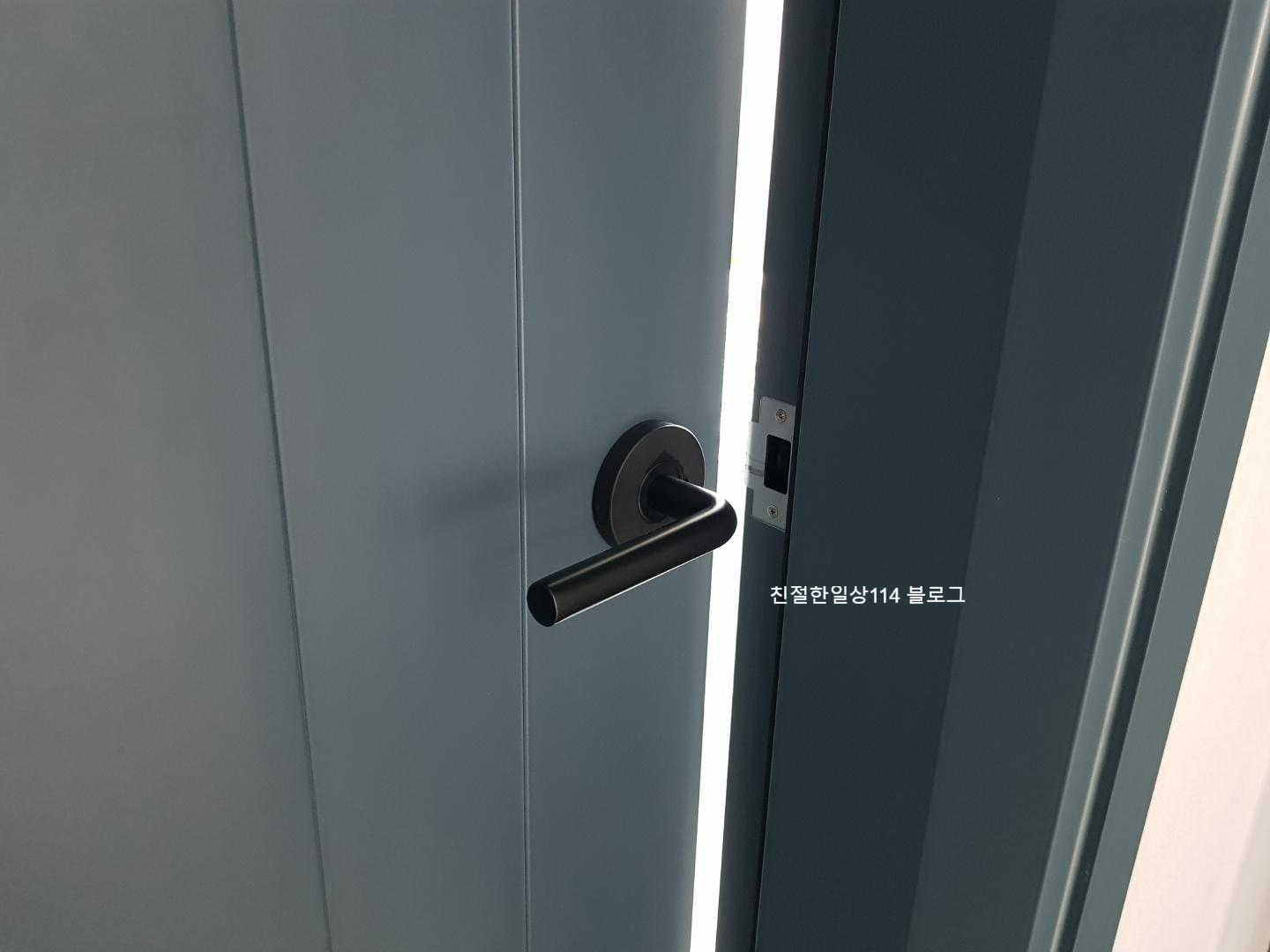 방문 손잡이도 선택해야 한다. 깔끔하고 심플한 블랙색상의 손잡이로 골랐고 손잡이까지 달고나서 보니 딥오션 색상과 잘 어울려 마음에 든다.