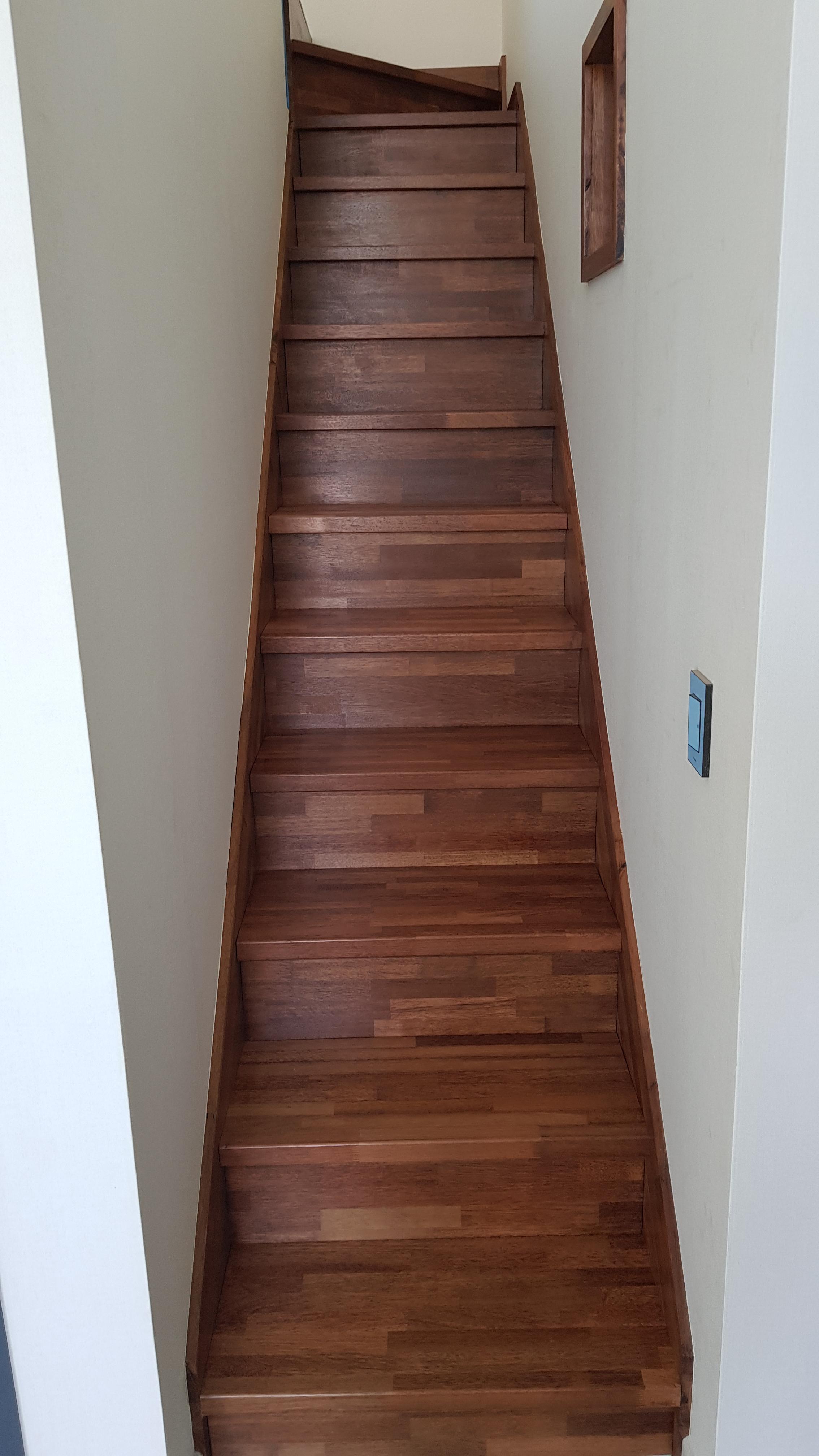 계단재를 어떤것으로 할지 골라야했다. 계단 마감재로 사용할 수 있는 목재도 종류가 참 다양하다. 처음에는 밝은 색깔의 집성판이나 에쉬로 생각했다가 조금 어둡고 묵직한 느낌의 멀바우로 결정했다.