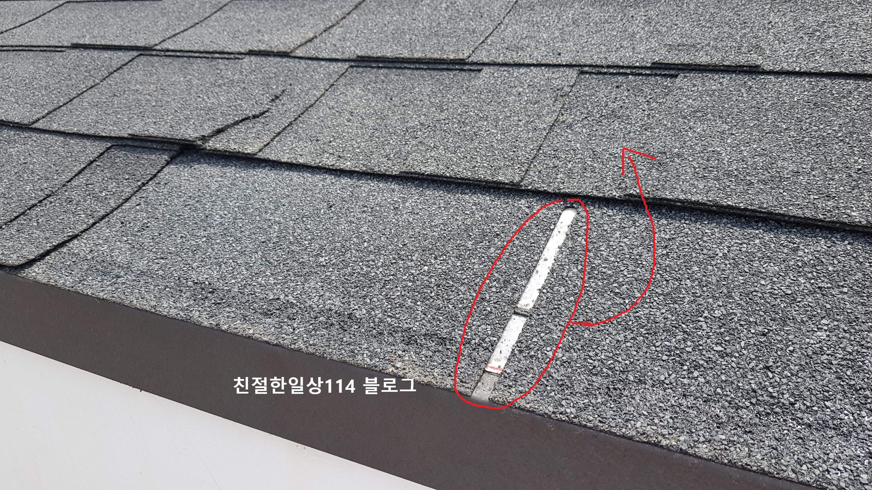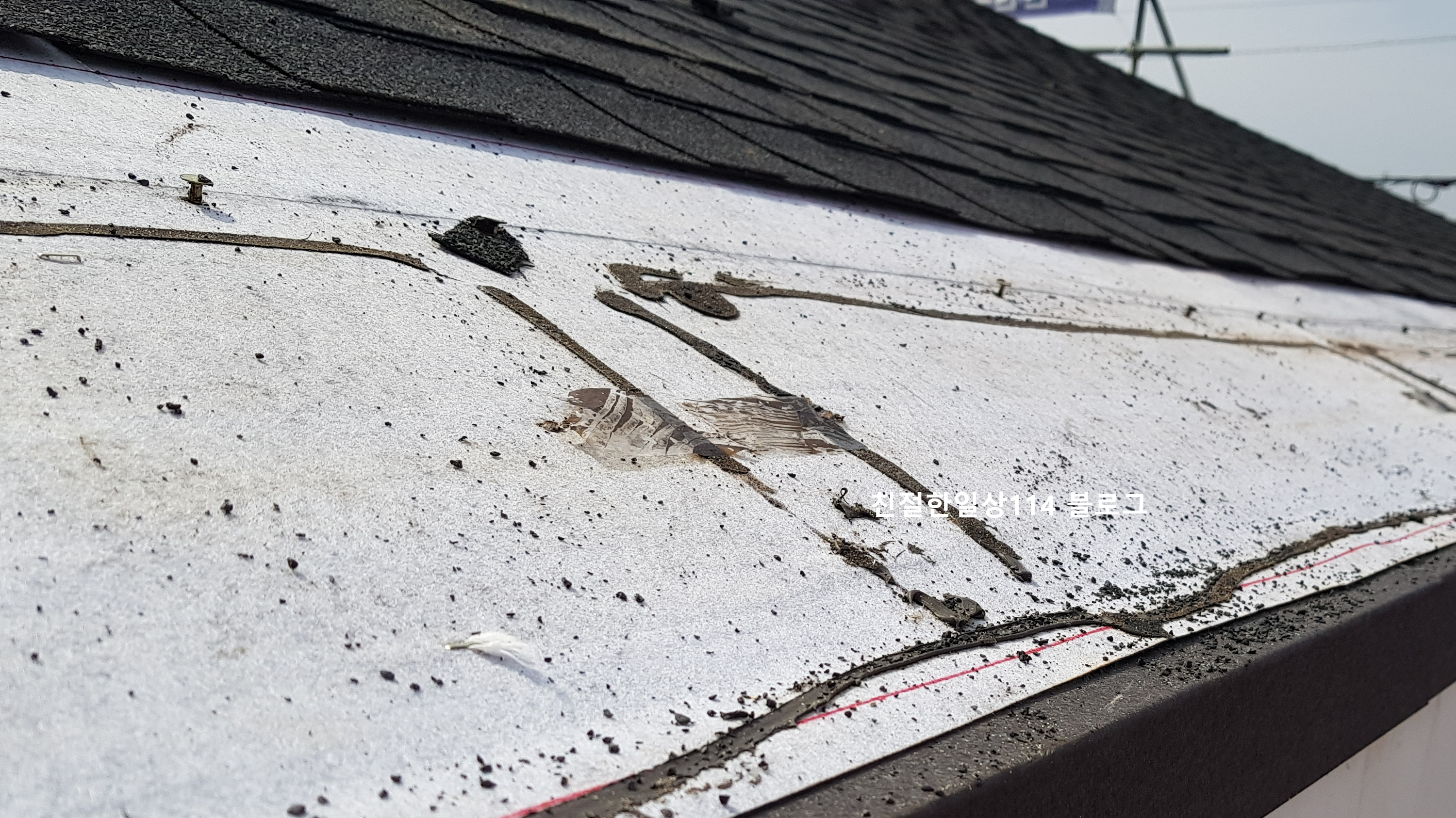 지붕의 처마쪽 슁글을 2줄 뜯어내었다.