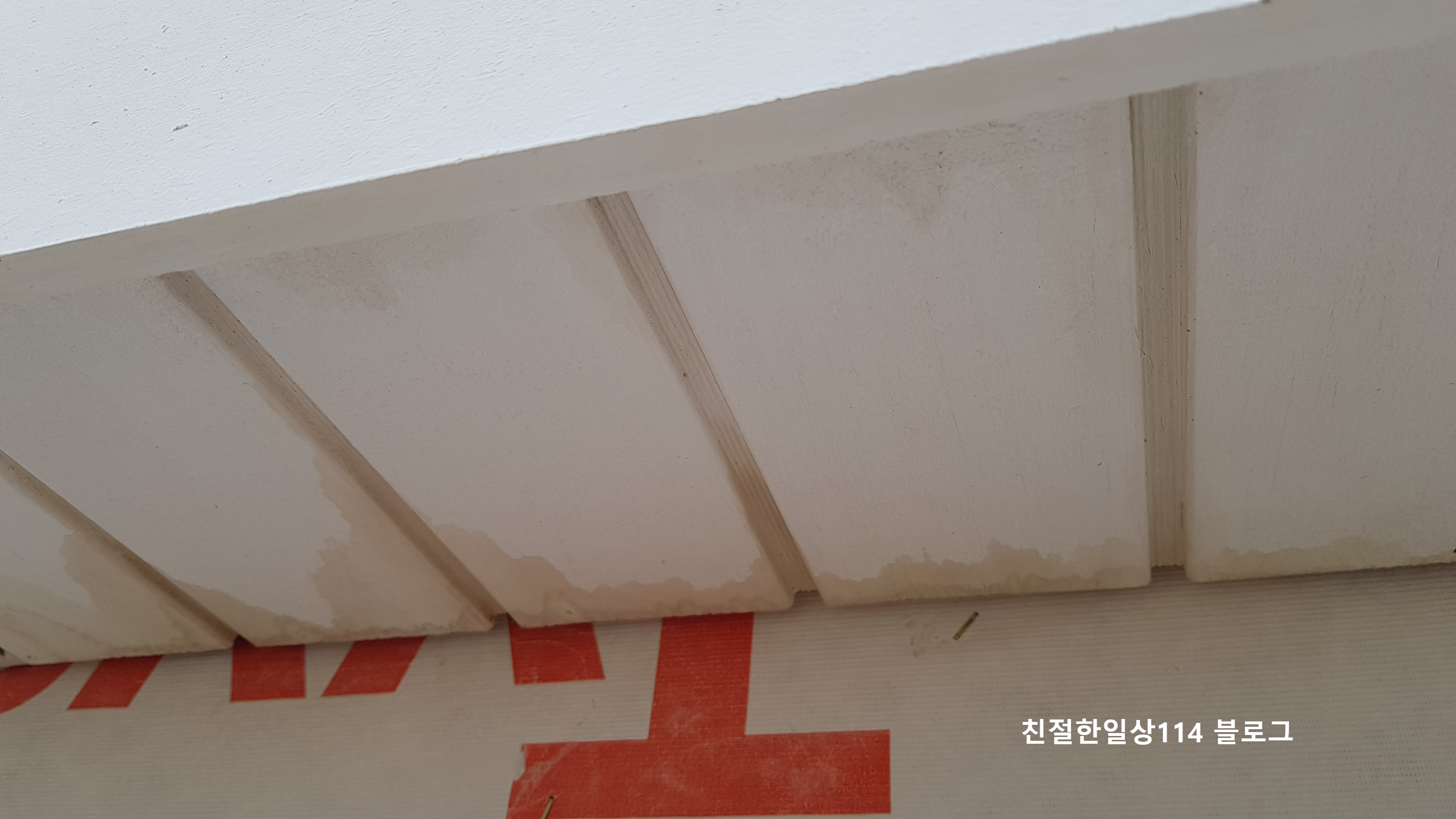 [전원주택짓기-누수/하자] 주택 처마(소핏)에서 빗물이 새고 물 얼룩이 생기다.