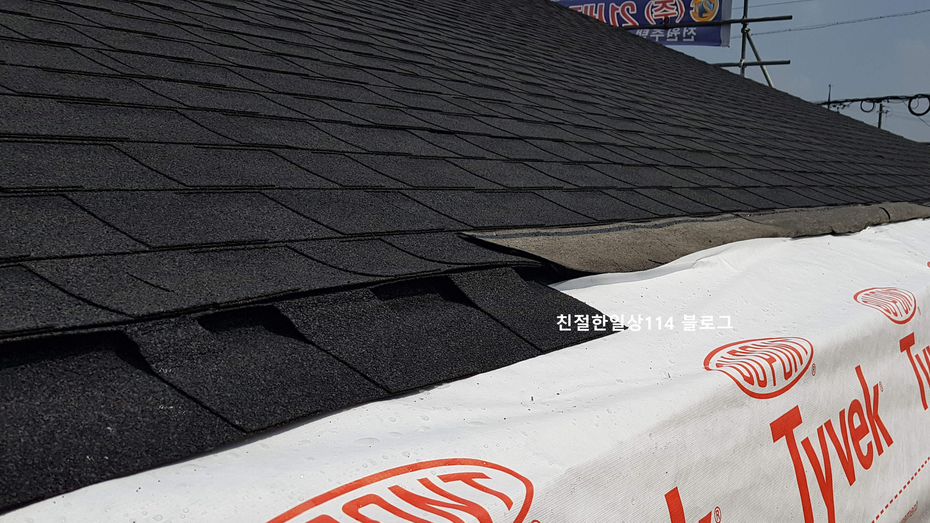밑에서부터 한줄씩 슁글을 붙여 나간다. 보수하는 날은 날씨와 내가 현장에 있을 수 있는 시간을 고려해 일정을 잡았다. 보수 진행하기 전 방수시트가 제대로 건조 되었는지와 제대로 시공 되는지 확인하기 위해서 였다.