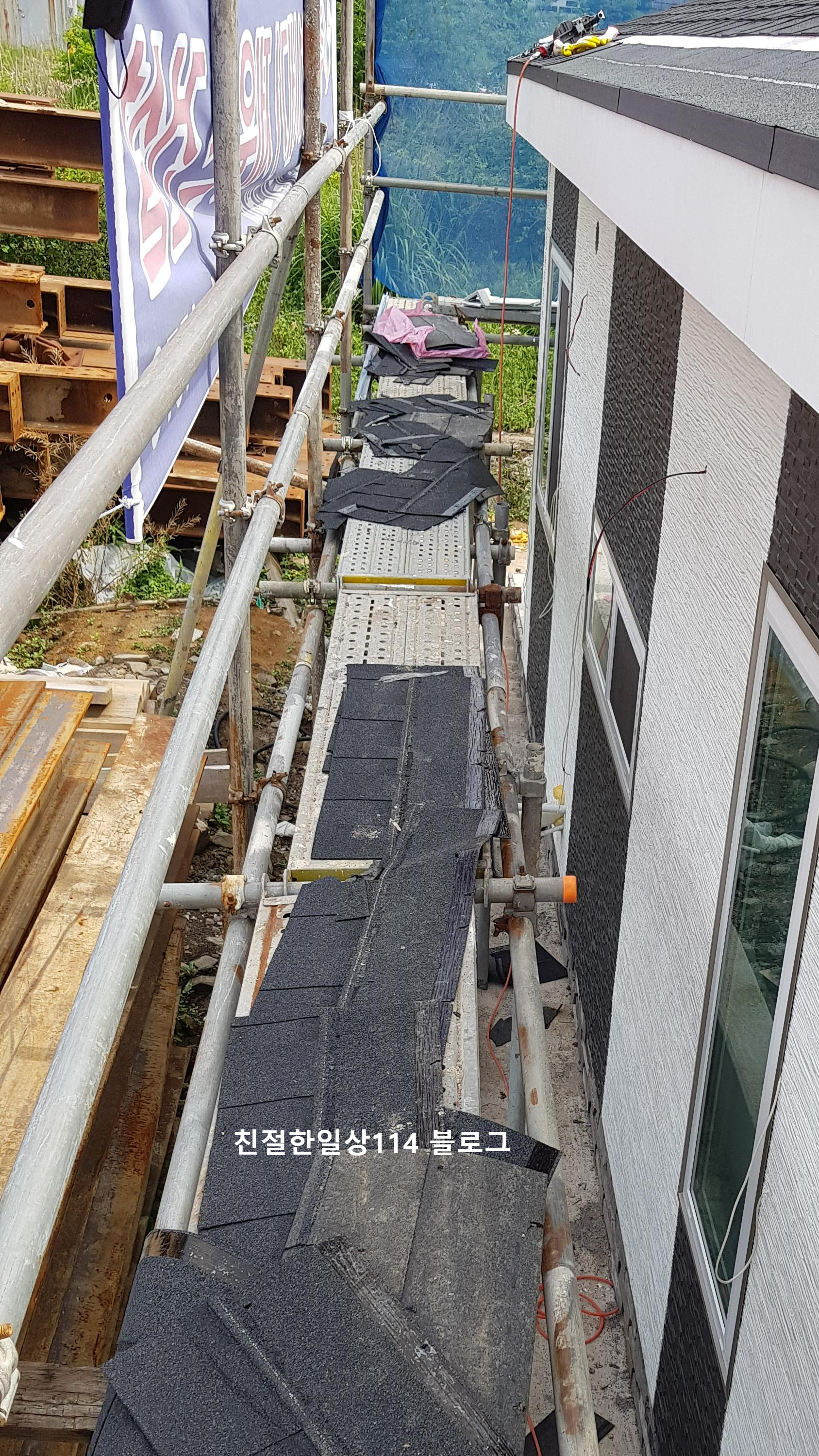 방수시트가 다 마른 뒤 실수가 있었던 부분에 슁글작업을 다시 한다.