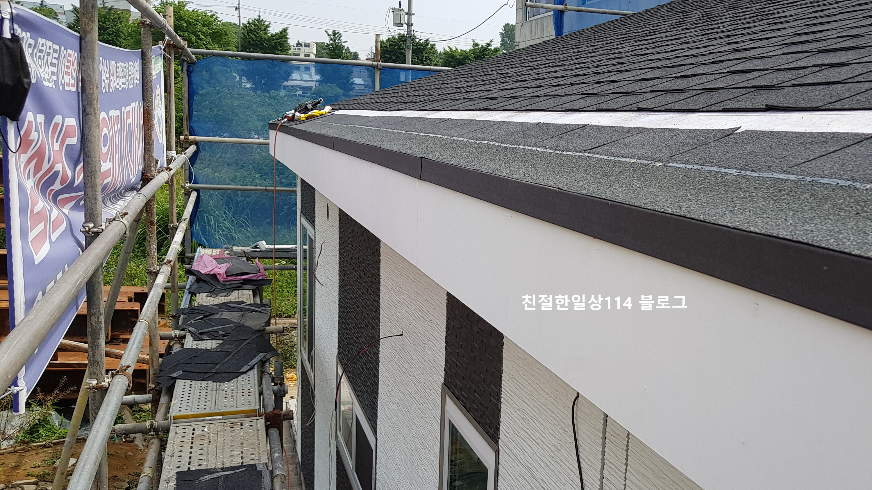 [전원주택 짓기–지붕공사] 박공지붕 이중그림자슁글 시공 현장 (시공 처마밑 빗물이 샌다?)