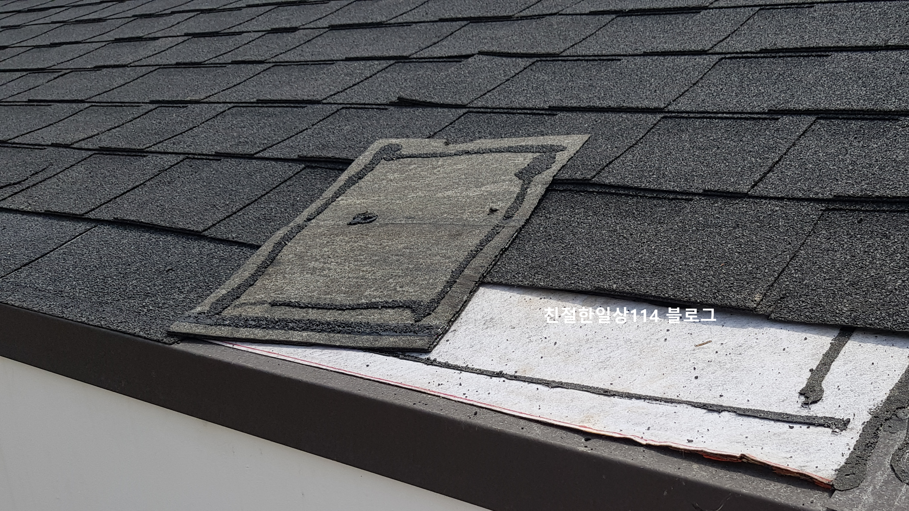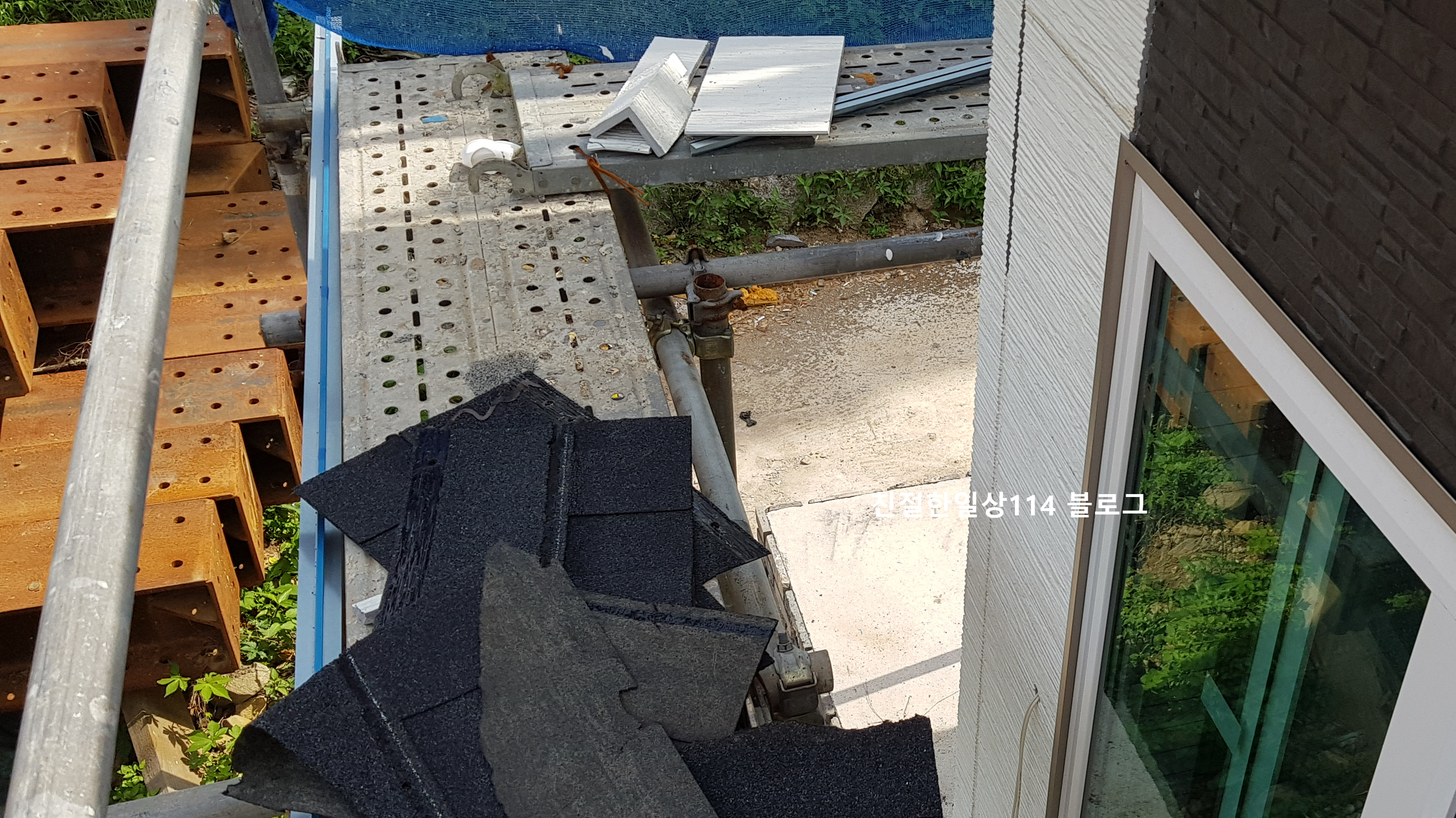 지붕의 처마쪽 슁글을 2줄 뜯어내었다.