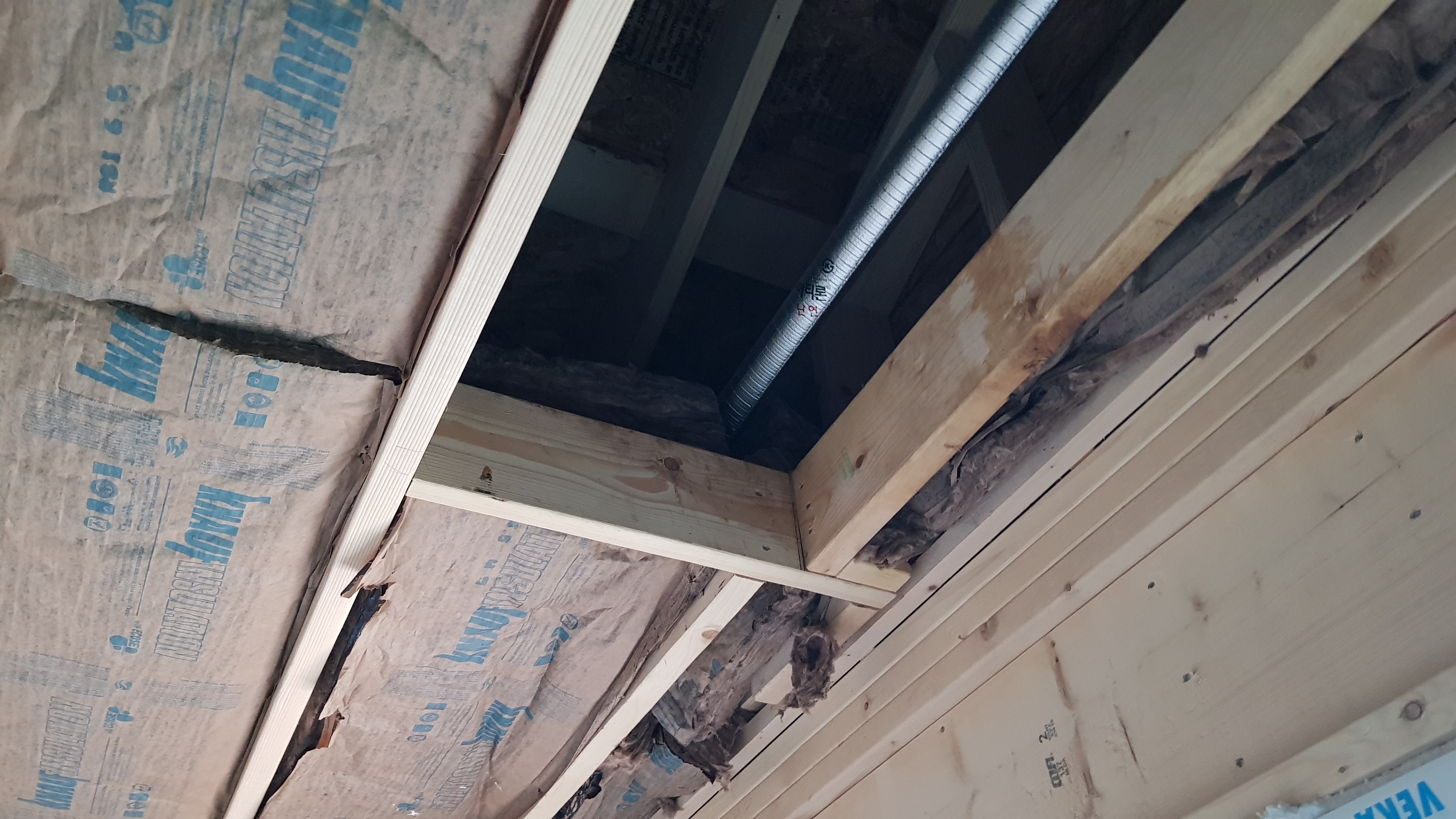 시스템에어컨이 들어갈 자리이다. 이건 다른걸로 막을 방법이 없다. 시스템에어컨 자리 밑으로 겨울에 웃풍이 들어오는거 아닌가 모르겠다.