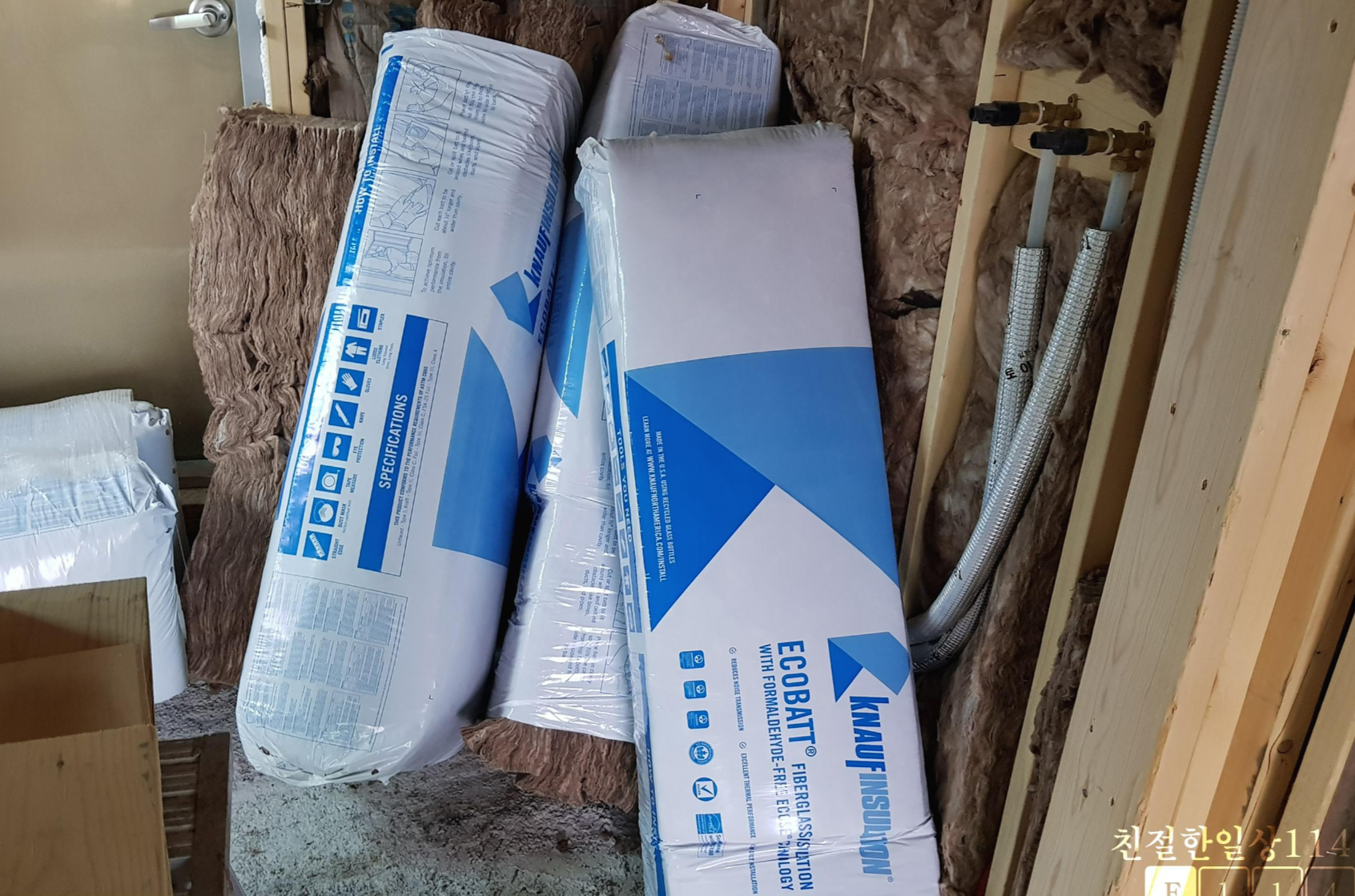 글라스울이란 단열재 소재와 크나우프 인슐레이션 등급에 대해서 잠시 알아보았다. 이제부터는 단열재 시공 현장 사진을 설명을 줄이고 올려본다.