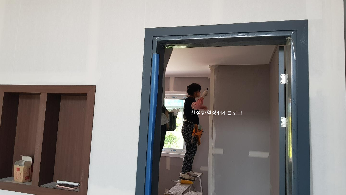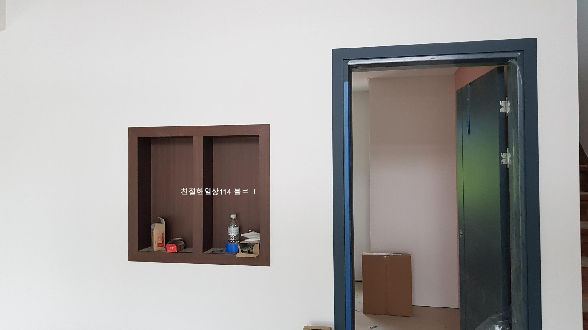 건물 내부 벽면을 석고보드로 마감해 평평하게 만들고 문을 달았다. 그리고 달아낸 문틀과 창문틀 그리고 가벽과 벽 매립수납칸에 인테리어 필름을 둘렀다. 이로써 도배 작업할 준비가 되었다. [전원주택짓기-인테리어필름] 창문틀, 가벽, 벽매립 수납칸 인테리어 필름 시공