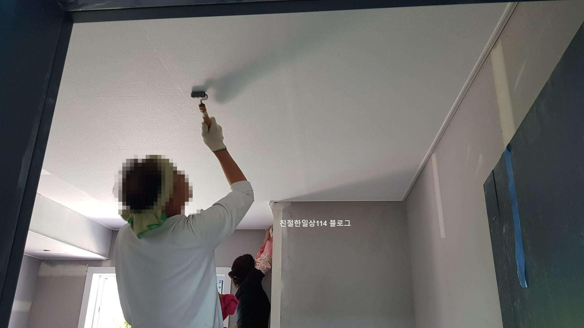 일주일이 지나고 도배 본 작업이 진행되었다. 사장님과 사모님 두분이서 작업을 하신다. 천장은 실크벽지 벽면은 합지벽지로 도배한다.