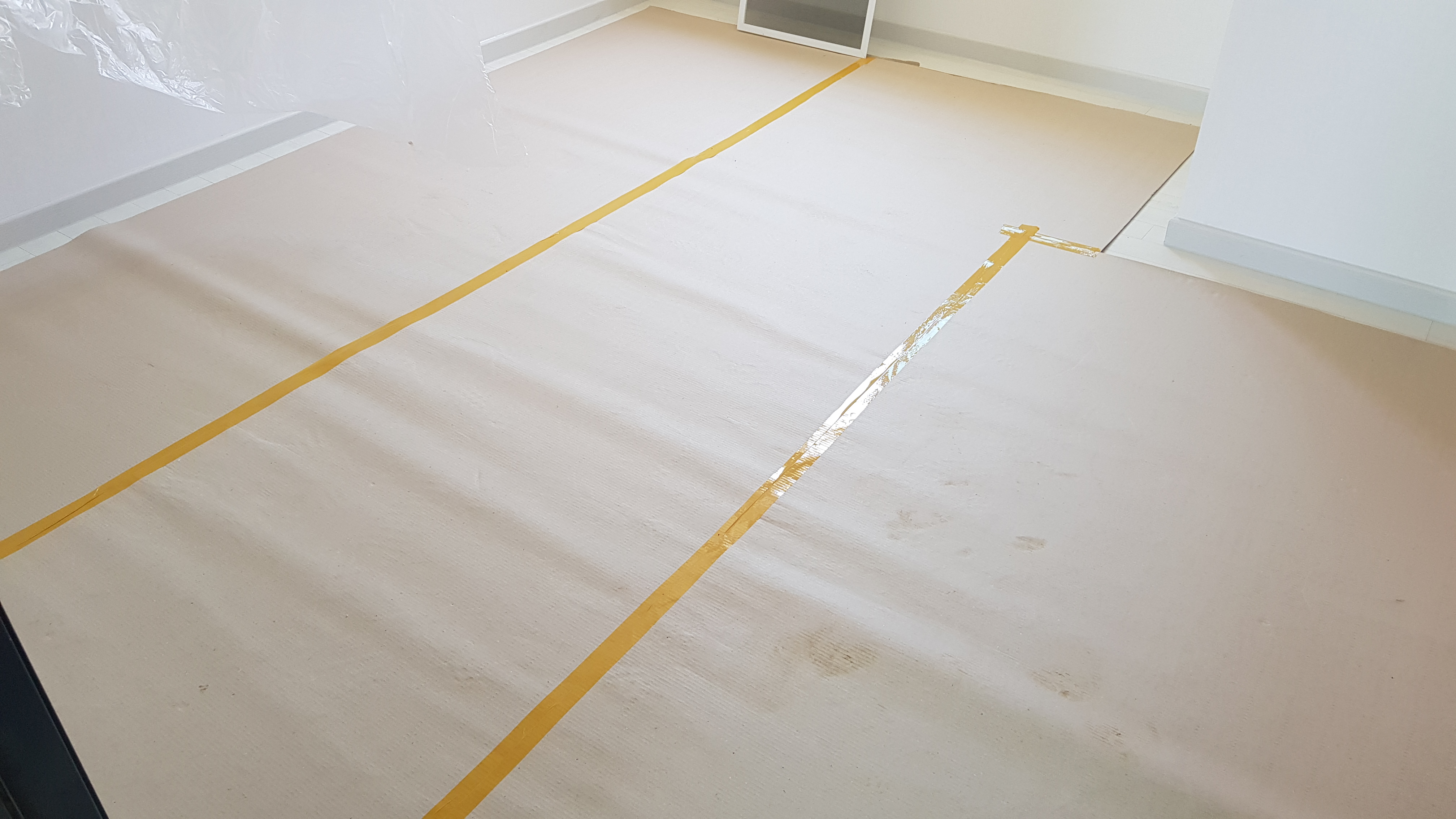 시간이 지나 보양해둔 종이를 걷어내고 잘 시공 되었는지 하자는 없는지 본다.
