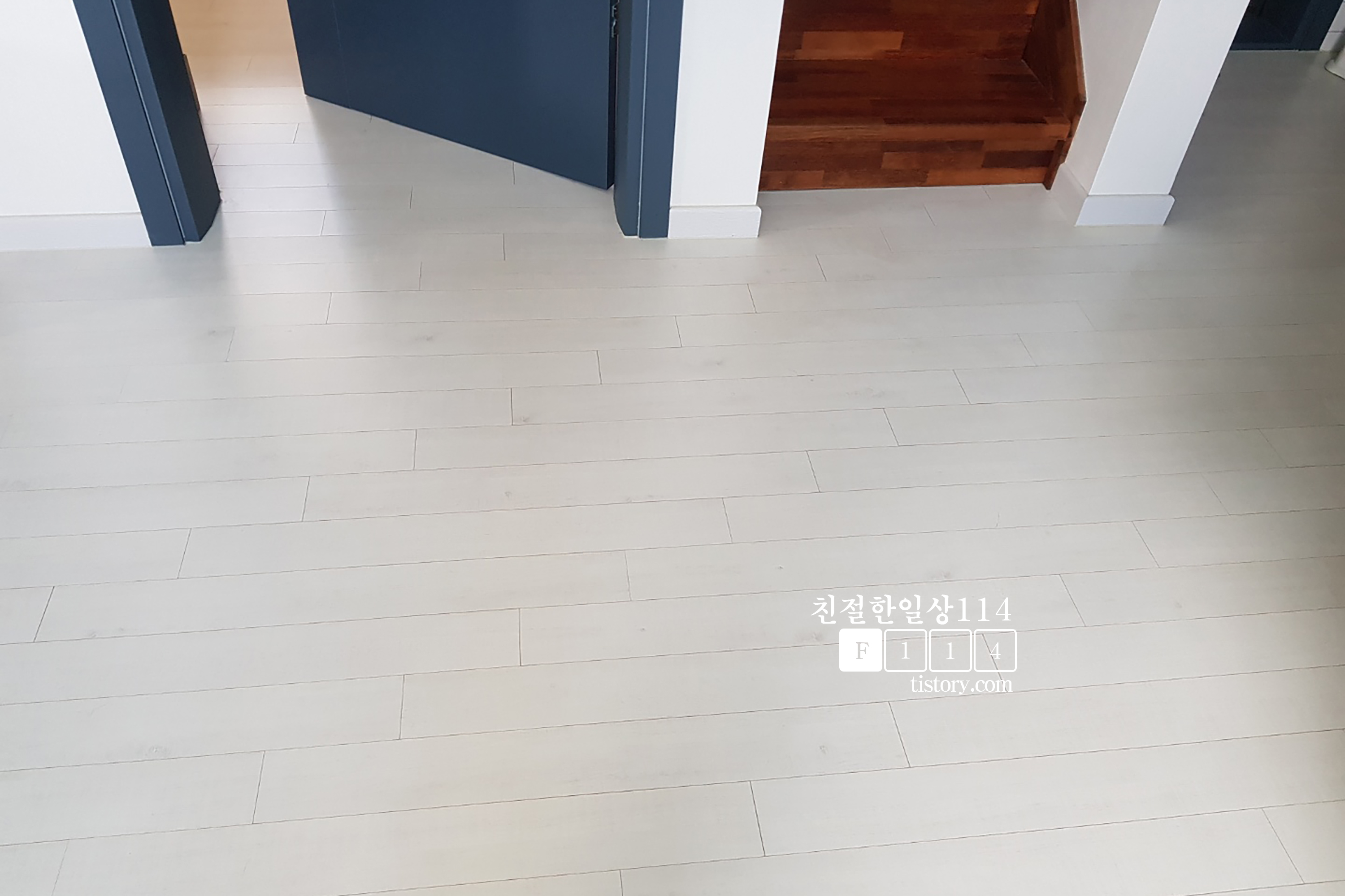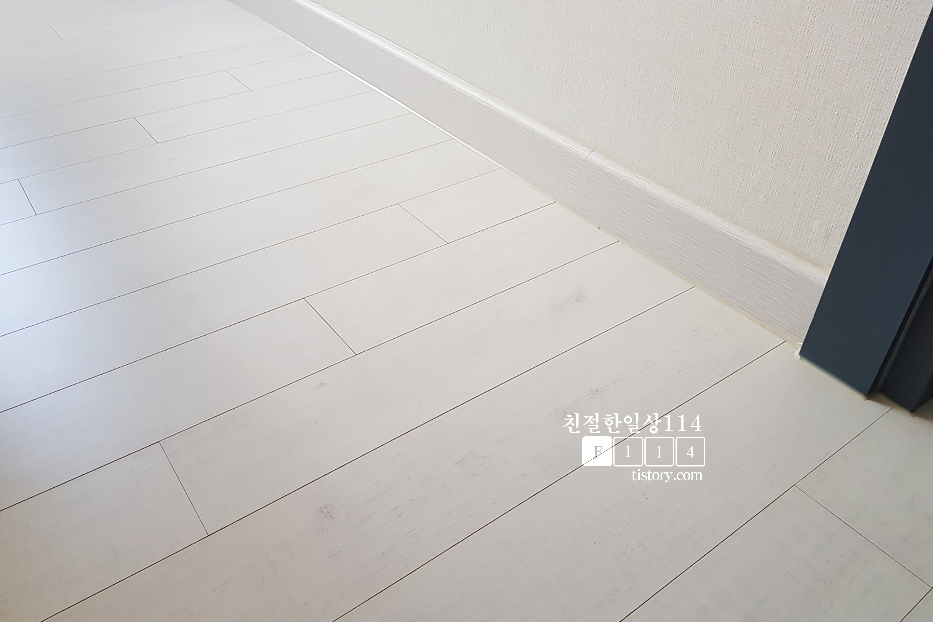 벽지도 흰색에 바닥 마루재 색상도 흰색계열이라 너무 붕 뜨는 느낌이 들지 않을까 걱정되었지만 시공하고나니 흰-흰이 잘 어울려 선택하길 잘 했다는 생각이 들었다.