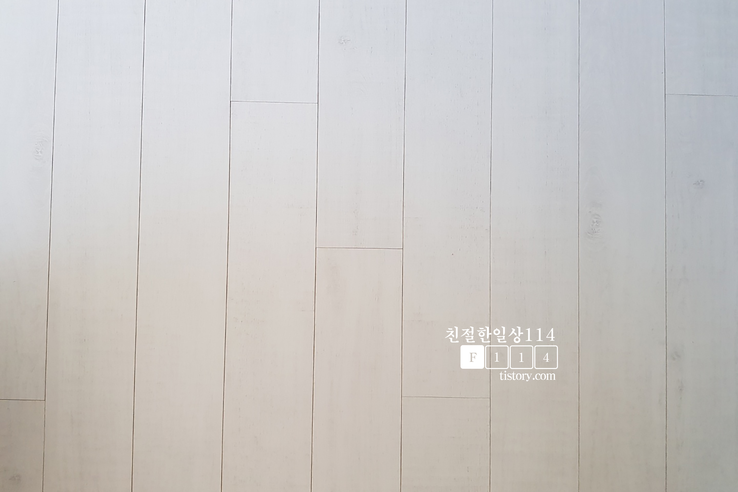 스노우화이트로 흰색이지만 은은하게 나무무늬가 들어거 있어서 심심하거나 밋밋하지는 않다. 같은 흰색 계열의 벽지와도 구분이 되어져 보인다.